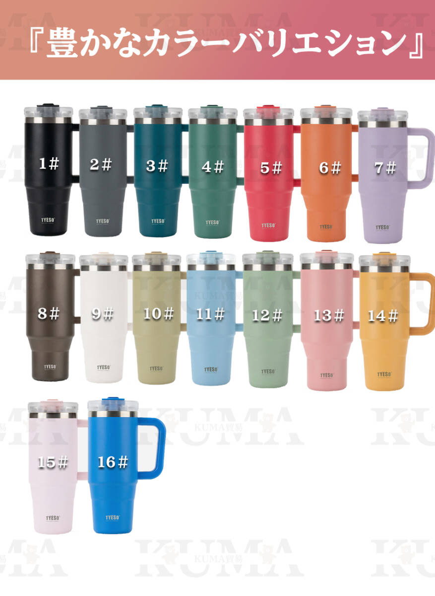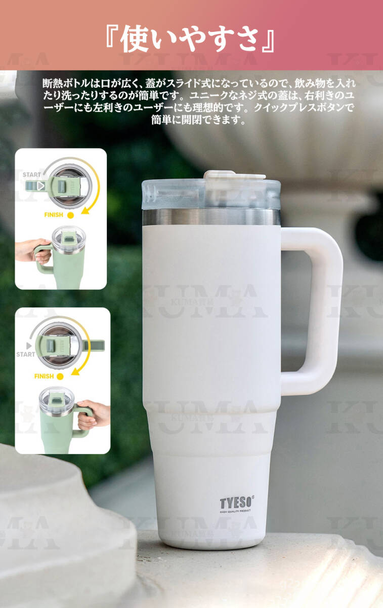 『落札後カラー提示×900ml』TYESO タンブラー最新作◆ストロー付き 大容量 タンブラー 蓋付き 二重構造 真空断熱 保温 保冷 qs-159