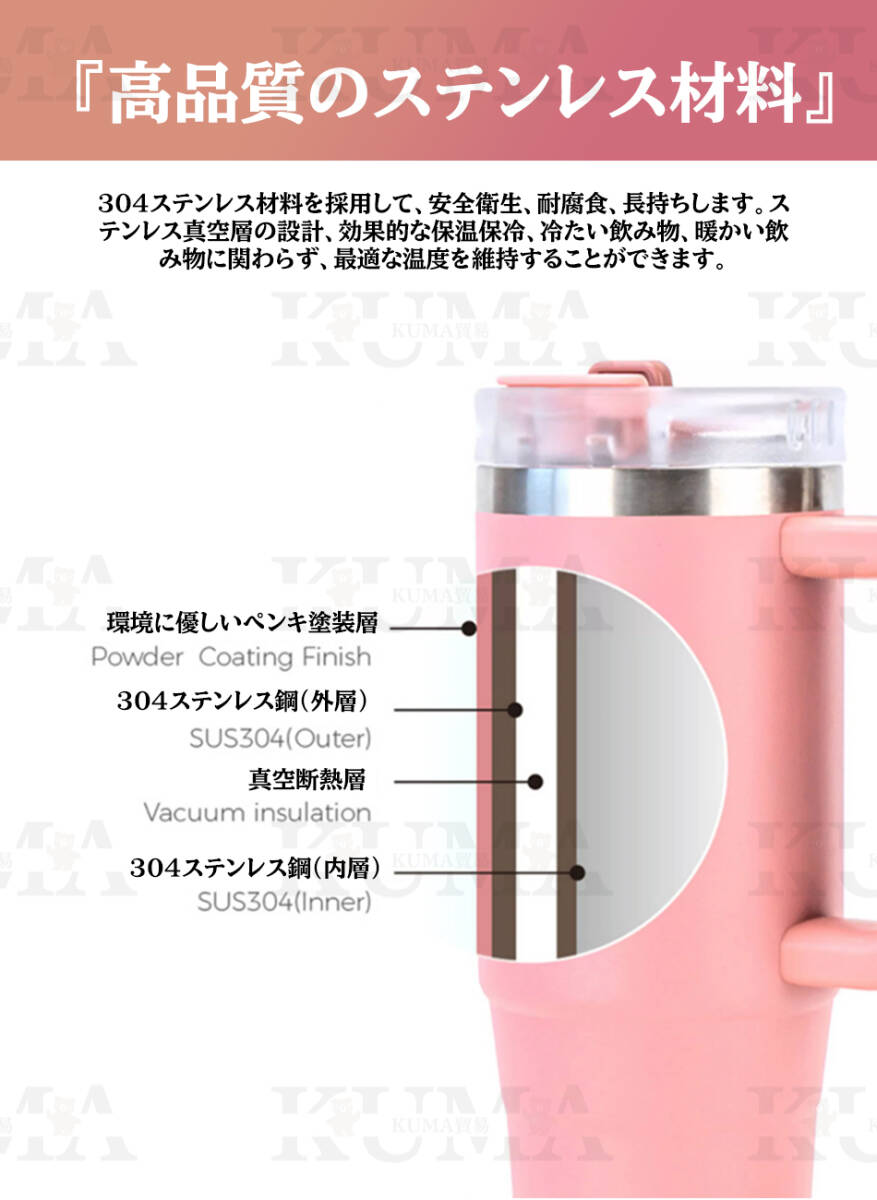 【高品質のステンレス材料】304ステンレス材料を採用して、安全衛生、耐腐食、長持ちします。ステンレス真空層の設計、効果的な保温保冷、冷たい飲み物、暖かい飲み物に関わらず、最適な温度を維持することができます。
