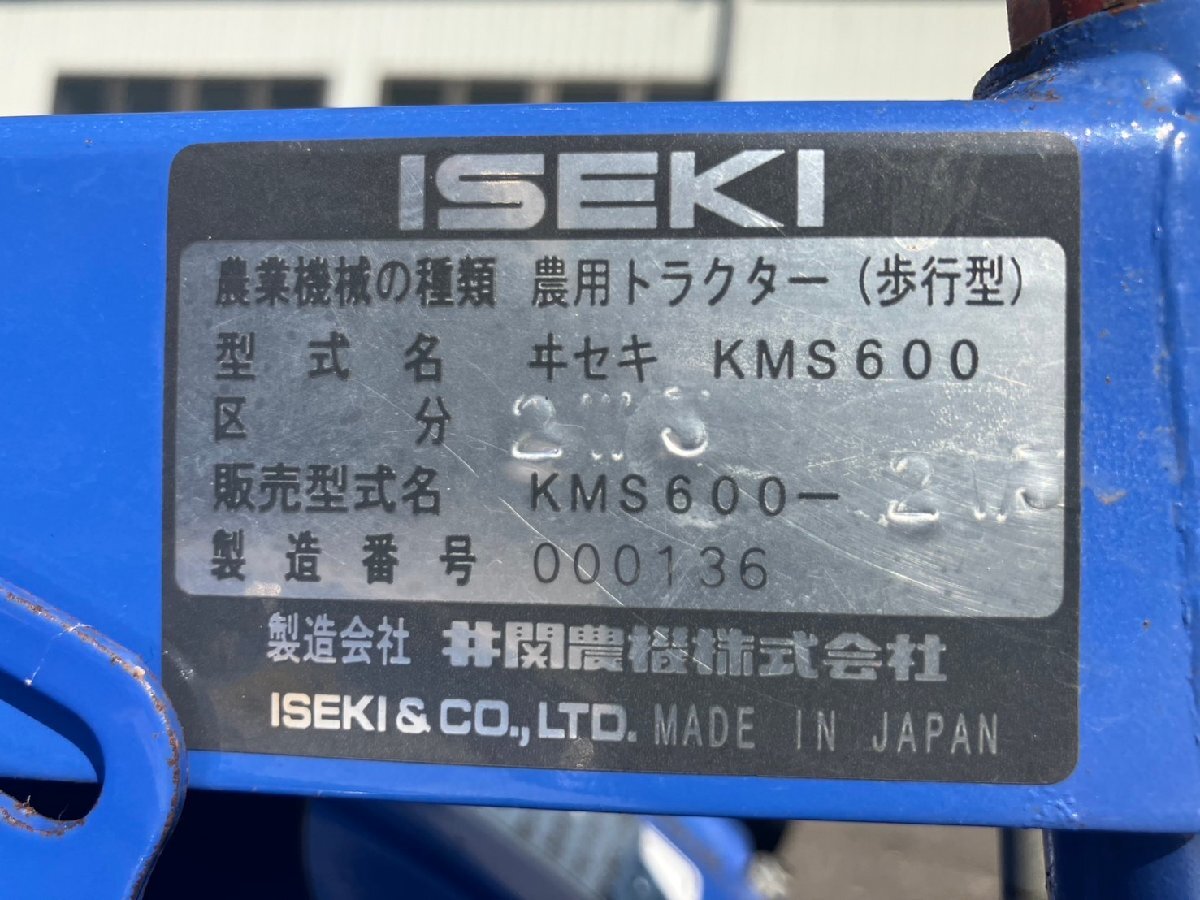 ◆【ヤフオク限定価格】香川県 中古 農機具 動作確認済み イセキ 管理機 KMS600 5.4馬力 ガソリンエンジン リコイルスタート