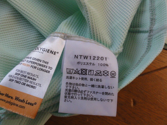 こちらの商品は品となります。特に目立つような汚れやヘタリ等はなく、状態はほぼ新品に近い状態ですが、あくまでもUSEDとなりますのでその点を納得の上でご入札ください。サイズ:M 色:ミントグリーン 素材:ポリエステル 寸法:着丈57cm(前)60cm(後)身幅45cm 肩幅38cm 袖丈55cm 型番:NTW12201 参考購入価格:7,000円ほど ノークレーム、ノーリターン