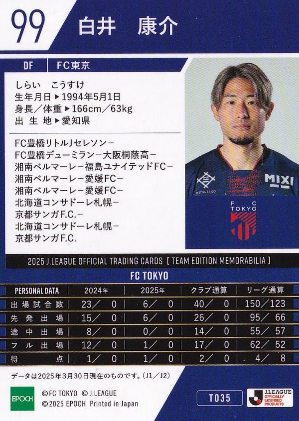 EPOCH 2025 TE FC東京 TO35 白井康介