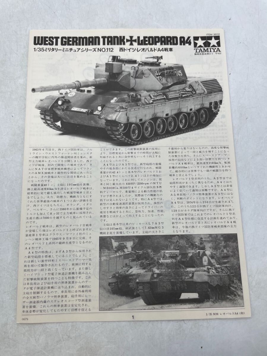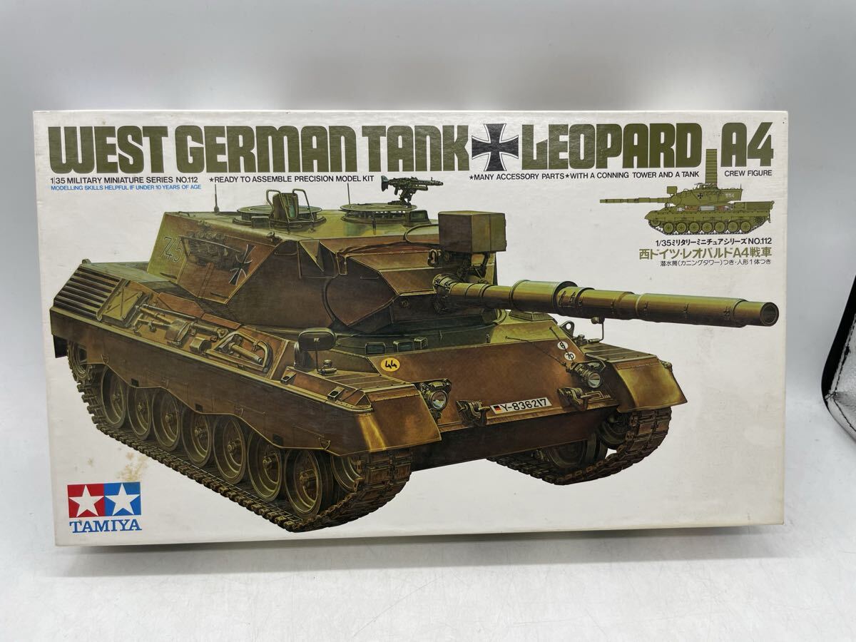 タミヤ製の1/35ミリタリーミニチュアシリーズ No.112「西ドイツ・レオパルドA4戦車」のプラモデルキットです。