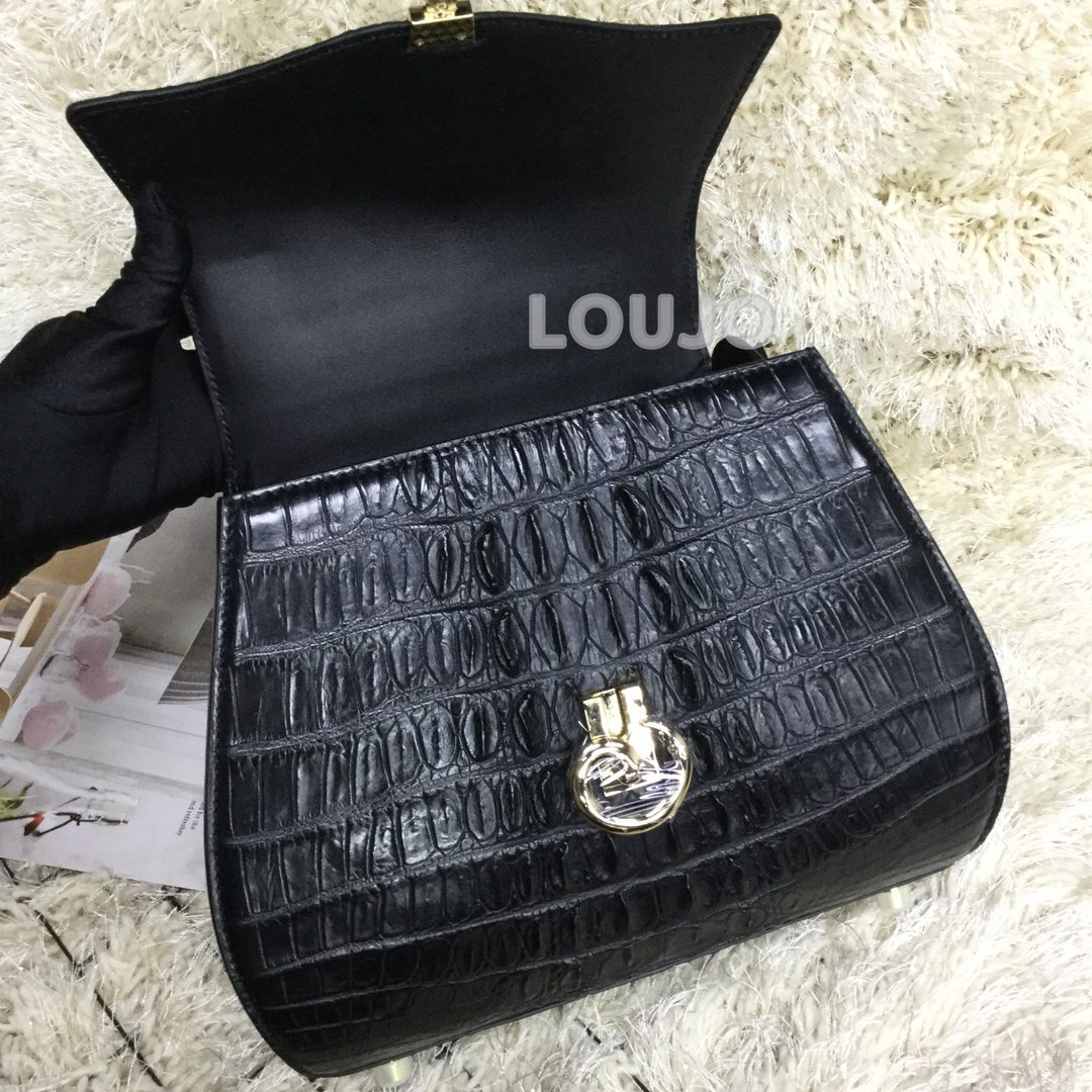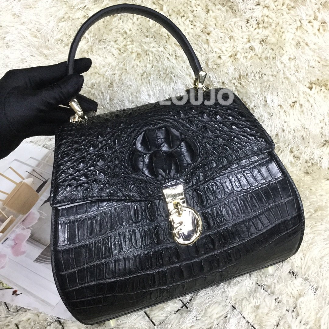 高級 クロコダイル レディース ハンドバッグ 鰐革 本革 鞄 ショルダーバッグ 肩掛け 黒