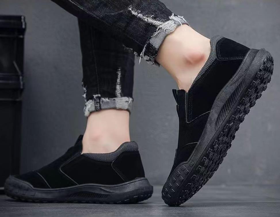 送料無料 匿名 スニーカー メンズ スエード風 スリッポン フラット ブラック 26cm