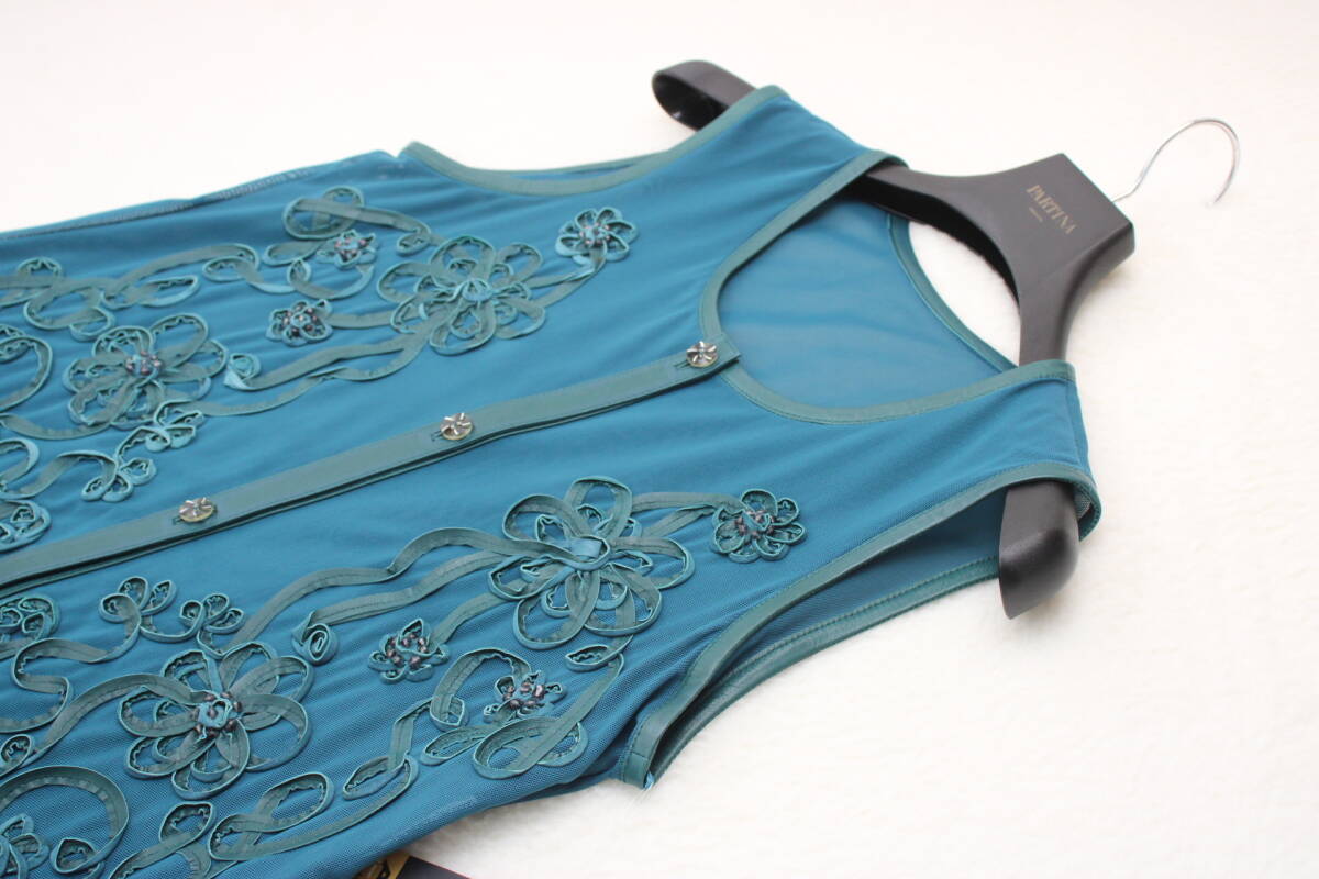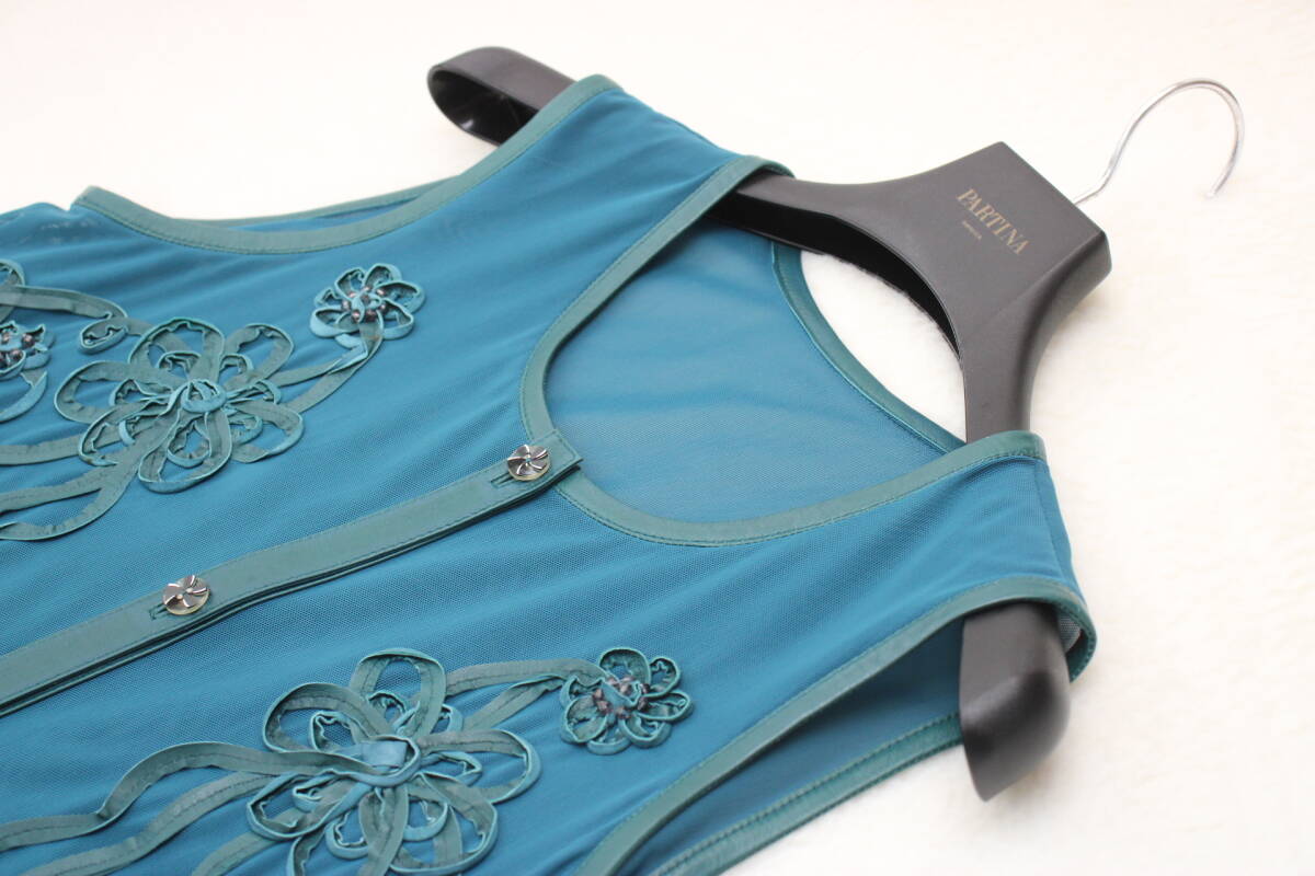 5-331 新品タグ付き 高級羊革レザーチュールベスト グリーン11号 定価¥32,000+税