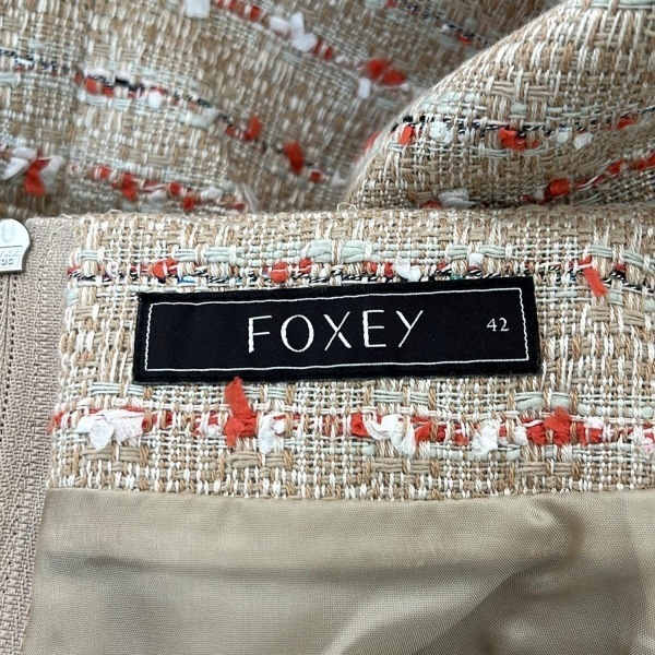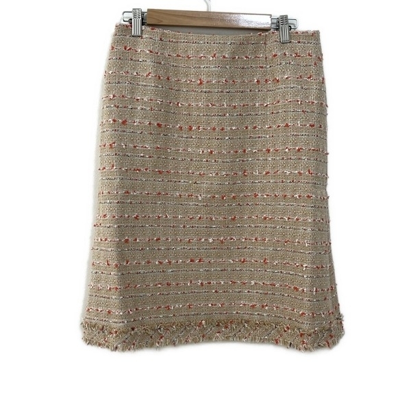 フォクシー FOXEY スカート サイズ42 L 38254 - ベージュ×オレンジ レディース ひざ丈/ツイード ボトムス