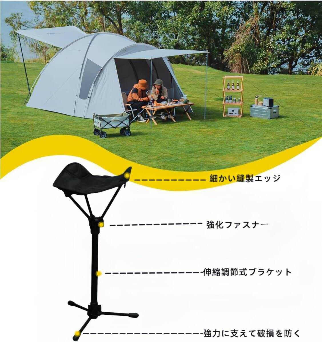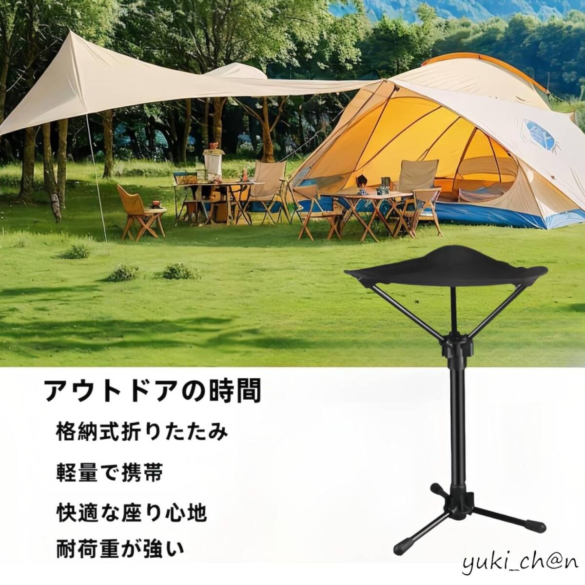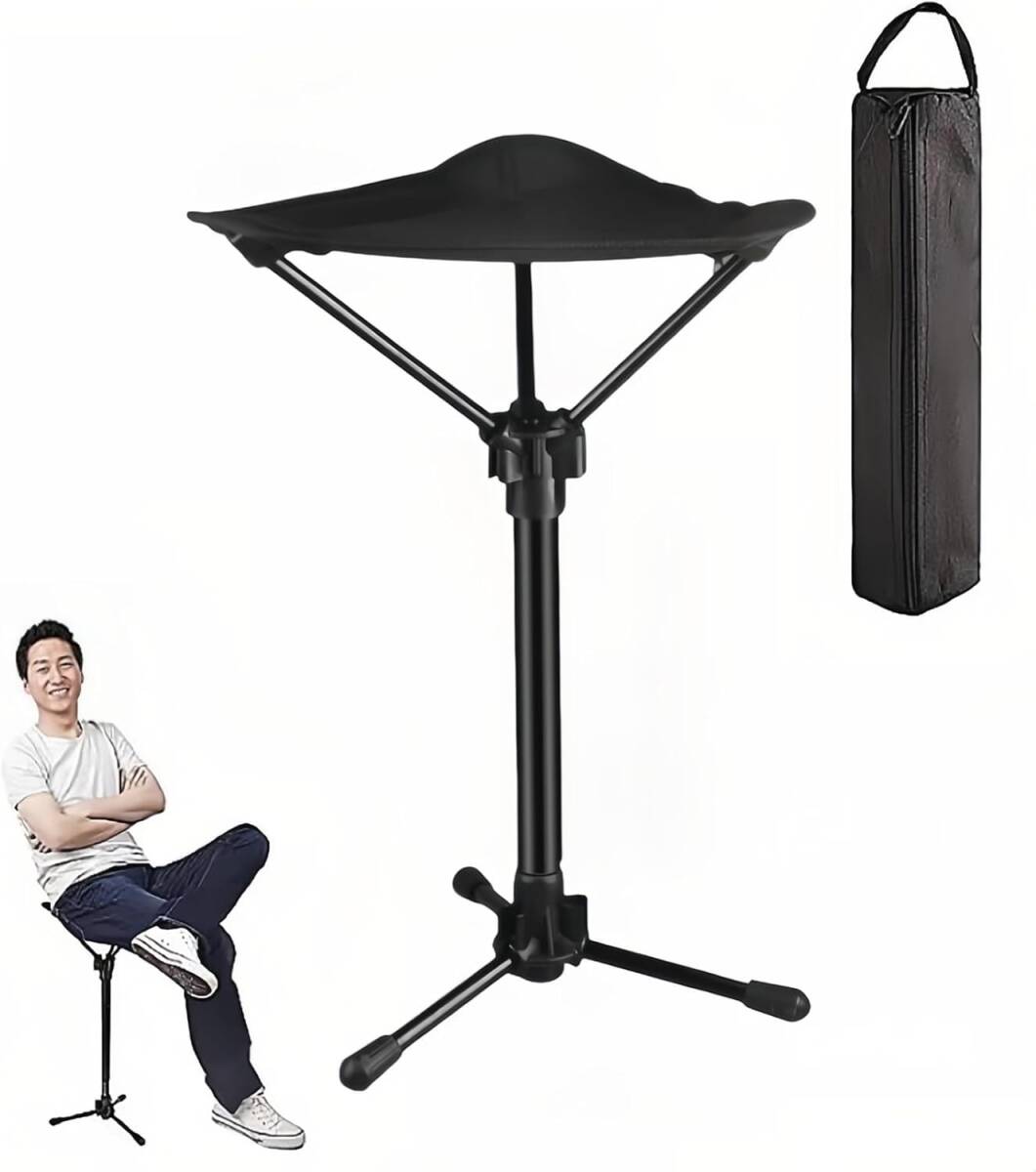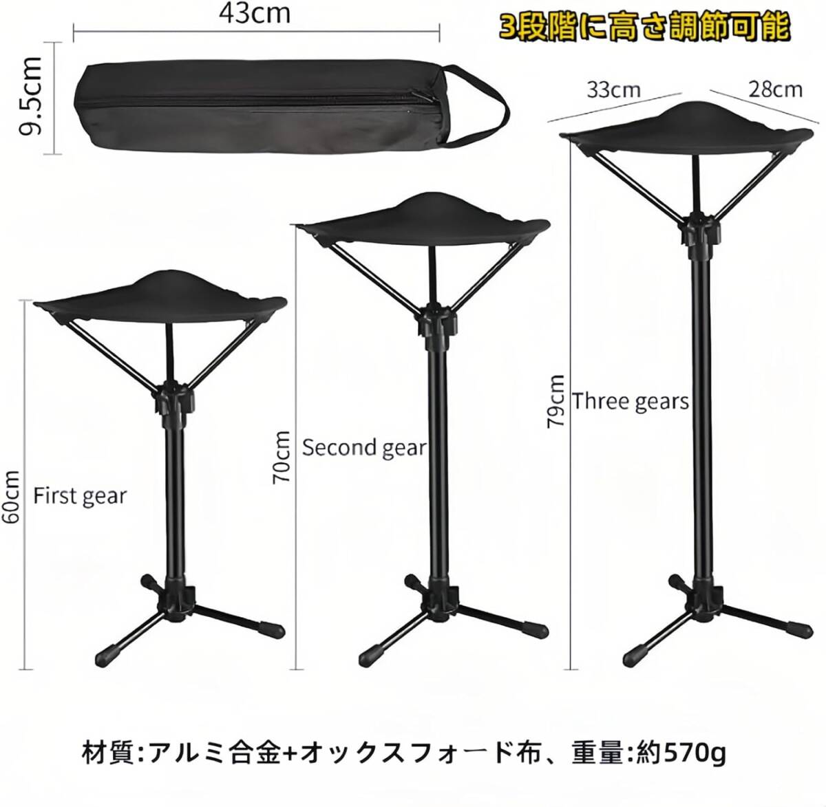 アウトドアチェア 折りたたみ椅子 3本脚 伸縮式 超軽量 キャンプ椅子 高さ調整 コンパクト 収納バッグ付き 3段高さ調節可能 耐荷重120KG 黒