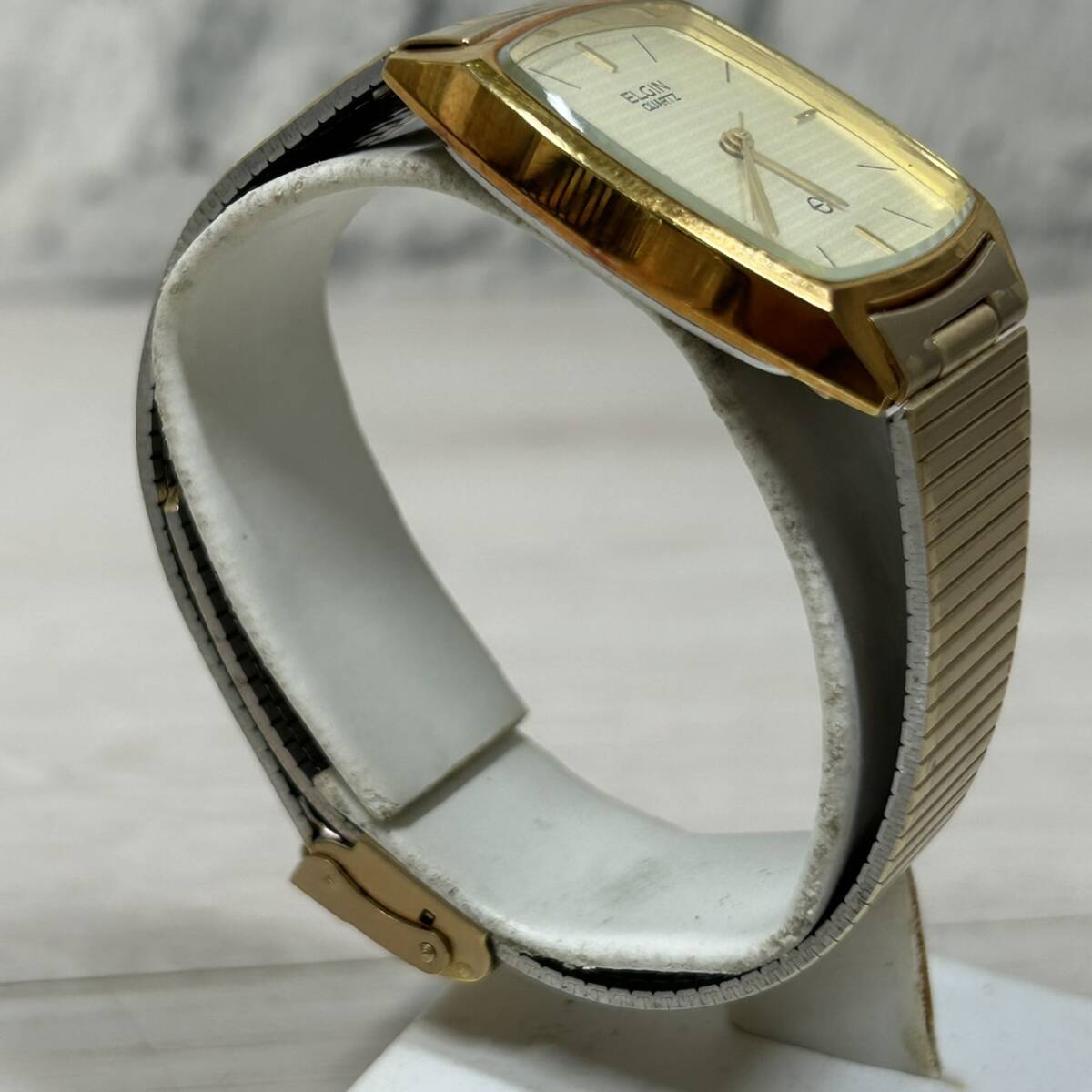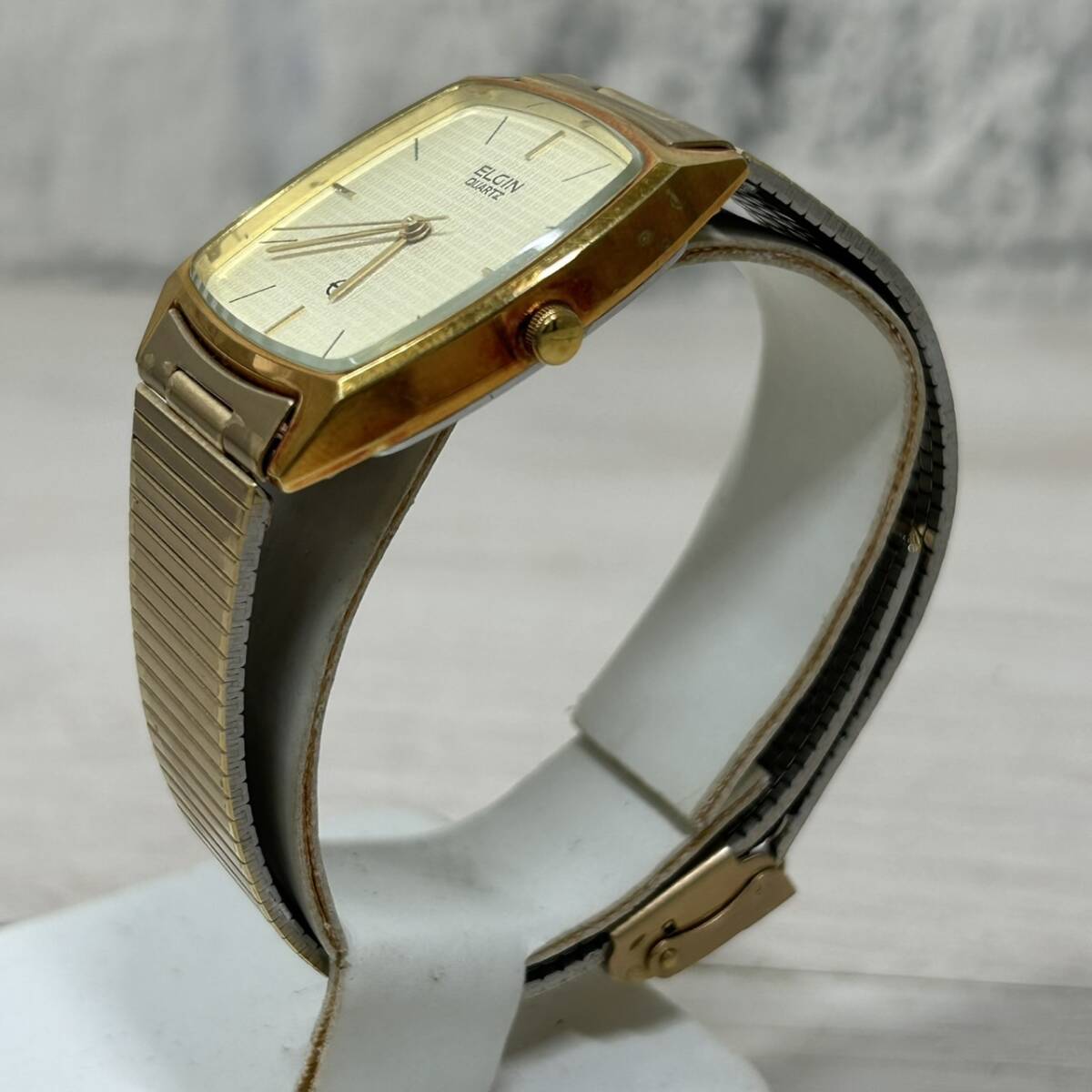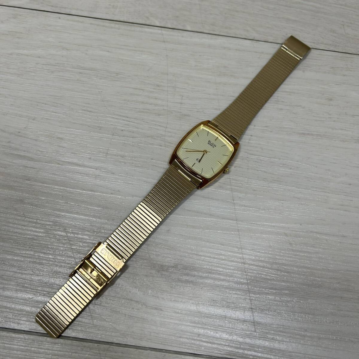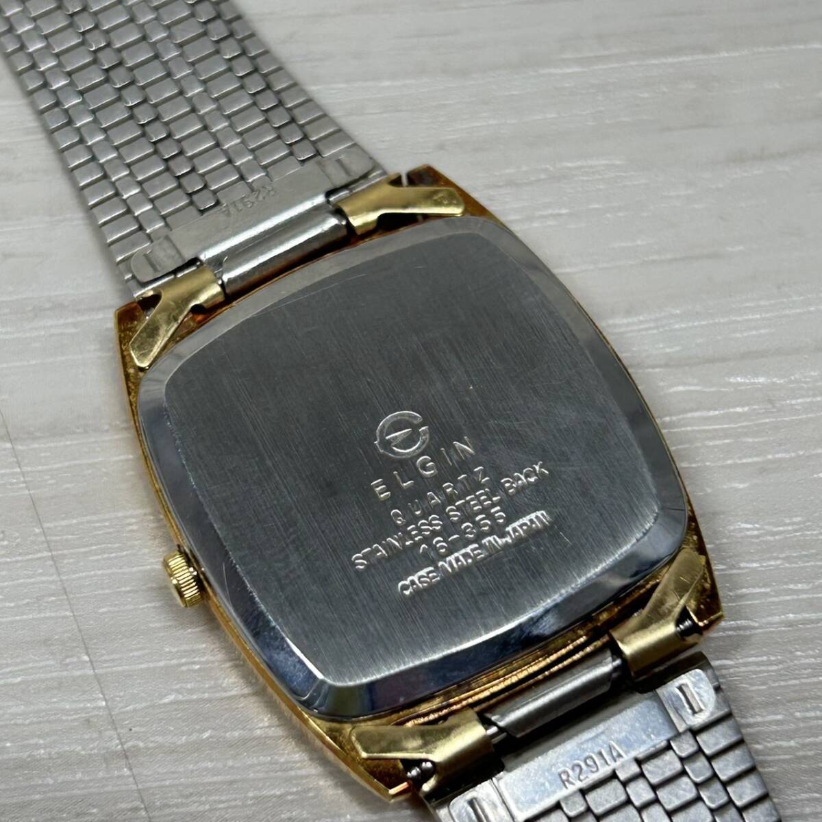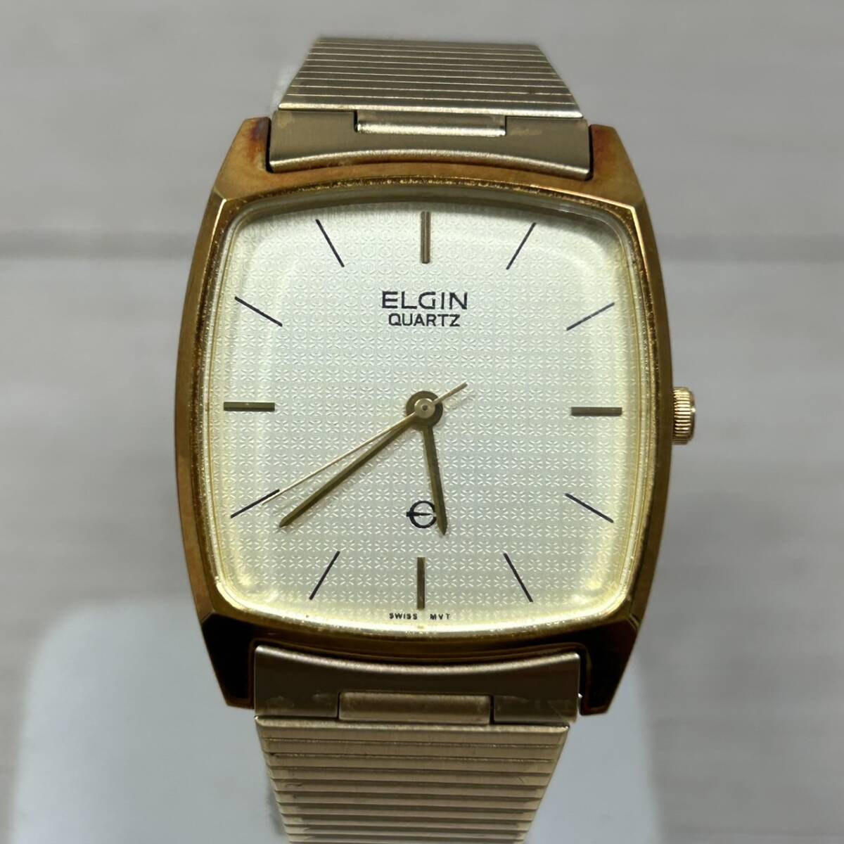 ●【YH-3419】中古品 ELGIN エルジン クオーツ スクエア QZ メンズ 腕時計 16-355 純正ベルト【レタパ可能】