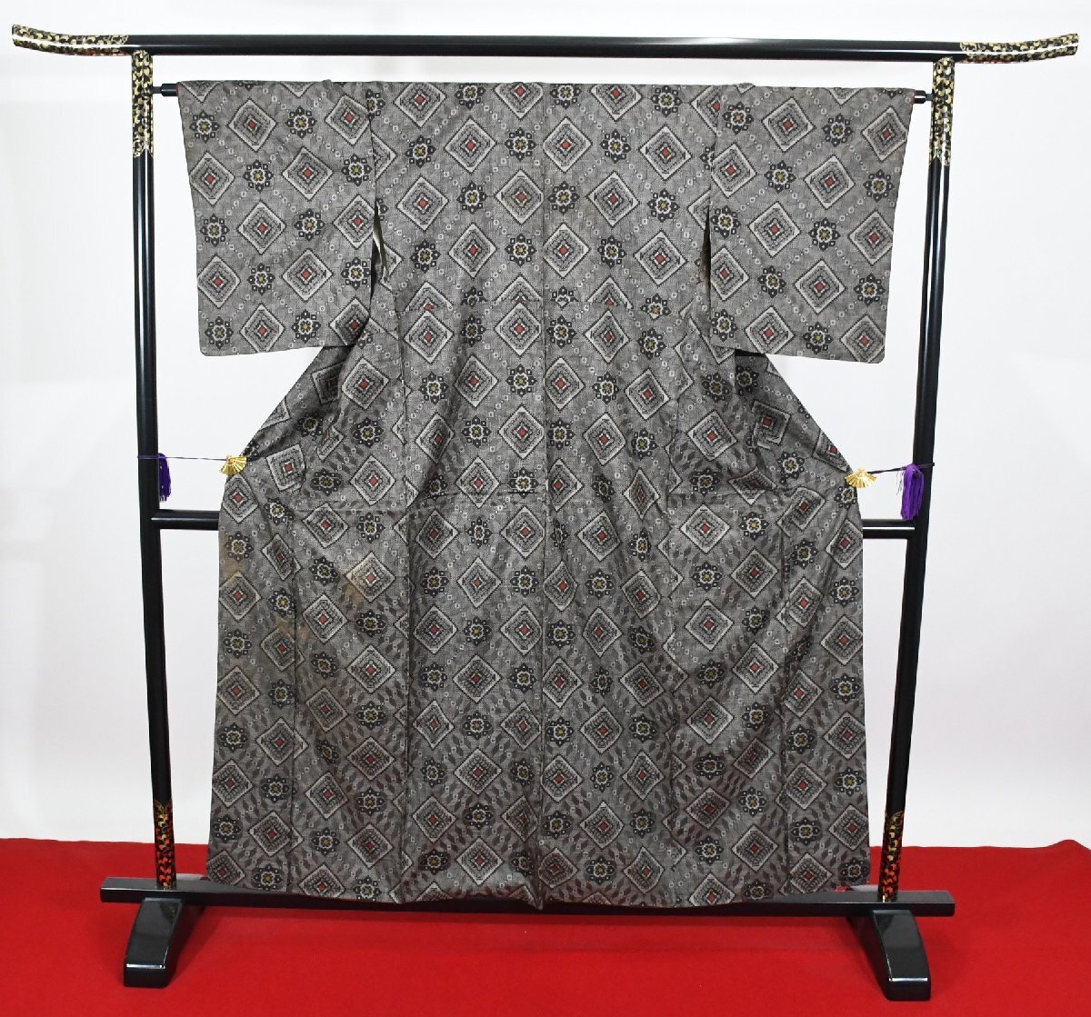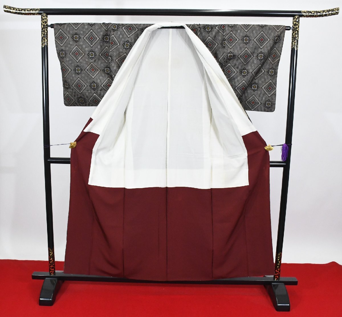 コメント | 衽、前身頃、衿、袖、裏地等にシミ汚れがあります。新品ではありませんので、中古品という扱いです。少したたみジワがある場合がございます。ご了承の上、ご入札をよろしくお願いいたします。 |