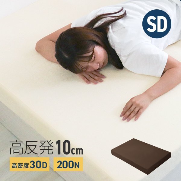 | 高密度30D!こだわりの硬さ200N! 厚みたっぷり10cm! 適度な硬さで身体をしっかり支える、高反発マットレスです。 柔らかいマットレスとは違い、身体の沈み込みを軽減した腰に優しい寝心地です。 高反発マットレスのウレタンフォームは弾性が高く、適度な硬さで身体を支えるので、底つき感もなくへたりにくいマットレスです。 寝返りが多い方や仰向けに寝ることが多い方におススメです。 取り外しやすいL字ファスナー付き洗えるカバーが付属しています! 【商品仕様】 カラー: ブラウン サイズ(約):幅120cm×長さ195cm×厚み10cm(セミダブルサイズ) 梱包サイズ(約):62×36.4×36.4cm 重量(約):8.5kg 素材:高反発ウレタン(密度30D(30kg/m3)) 、パイル生地 他 硬さ:200ニュートン ※耐熱仕様ではございませんので、電気毛布との併用はおやめください。 |