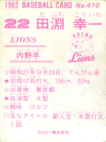 カルビー1982 田淵幸一(西武) レギュラーカード #410