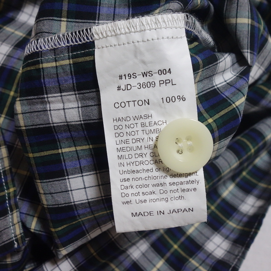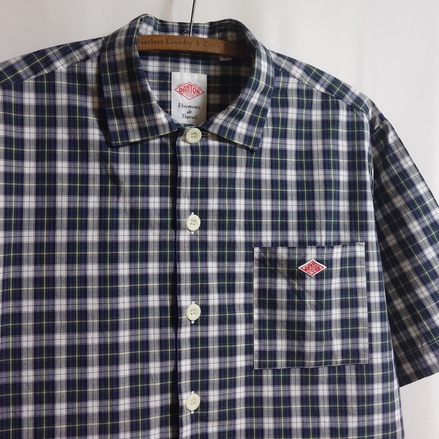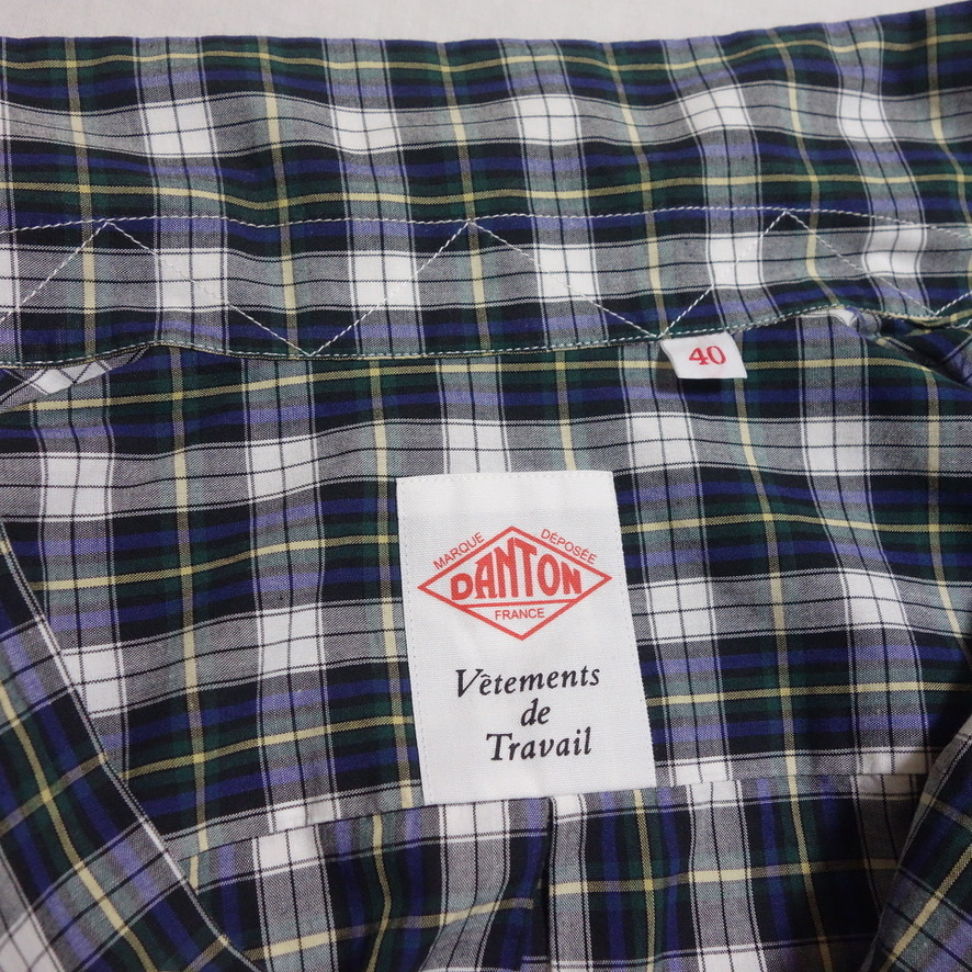 【DANTON チェック ワイドシャツ JD-3609 PPL 40】ダントン フレンチ ワークシャツ