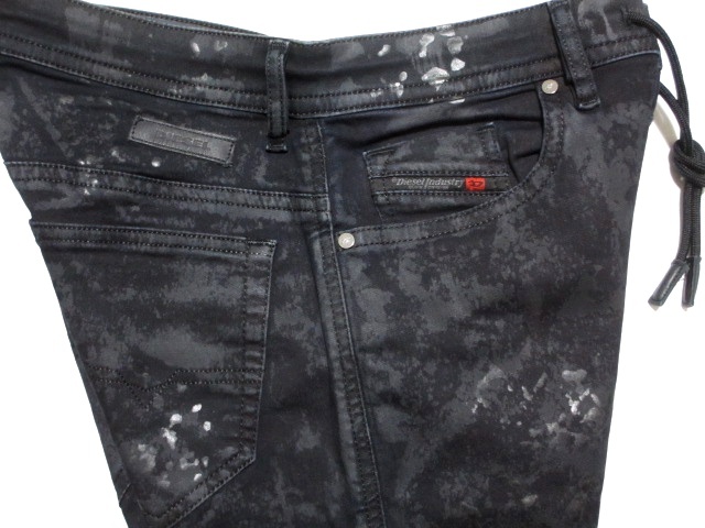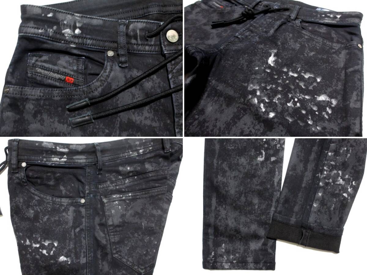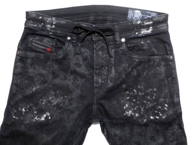 即決 美品 ブラック黒ジョグジーンズ DIESEL THOMMER CB-NE ディーゼル トマー W28実78 ストレッチデニム 細身美脚ドロップ柄 メンズ