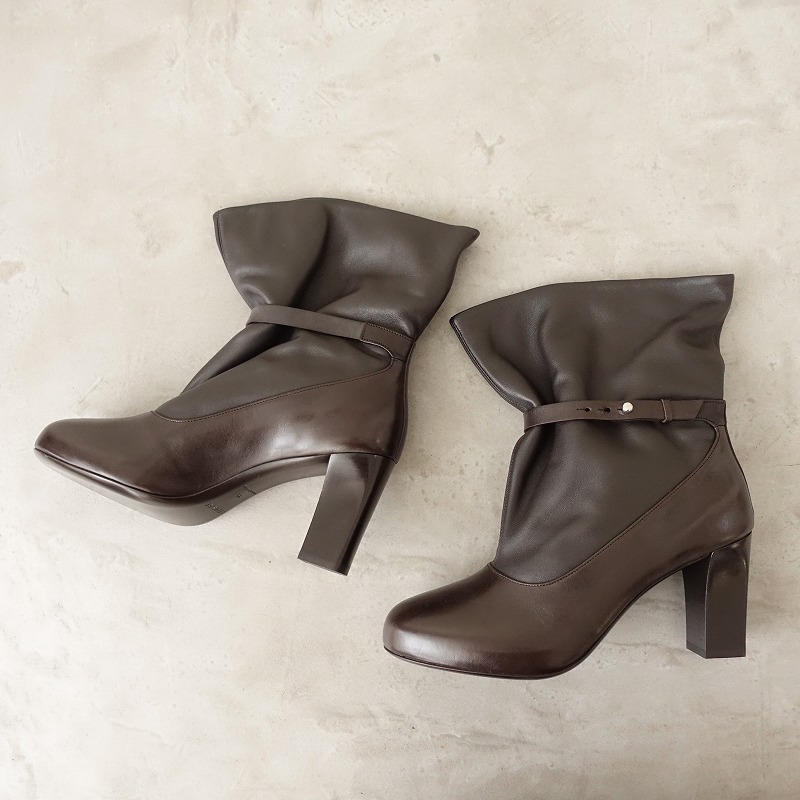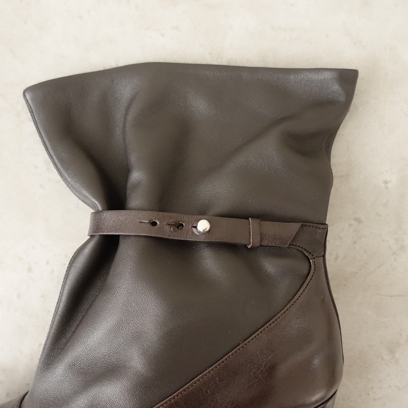 LEMAIREのSOFT MID BOOTS ブーツです。カラーはダークブラウンで素材はレザー、足首のベルトは3段階に調節可能です。 |