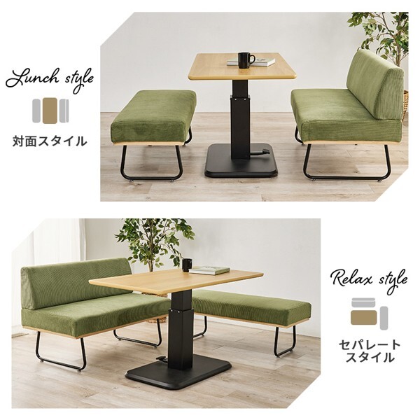 ※現在ご覧の商品ページはナチュラル/ライトグレーのご購入ページとなります。 ヤフオクの仕様上単一ページに複数バリエーションを掲載することができませんので、他バリエーションが希望の場合は別ページでご購入お願い致します。 コーデュロイ生地のおしゃれなソファを合わせたダイニングセット。 座面はやや低めで圧迫感を与えづらく、テーブルの天板は体格に合わせて無段階に昇降できます。 配達業者を指定いただくことはできません。 北海道/沖縄/離島のお届けに別途中継料金が発生します。 ※別途送料が発生する場合は後ほどご連絡させていただきます。 当店は正規店です。 タイミングによっては在庫切れの場合があります。