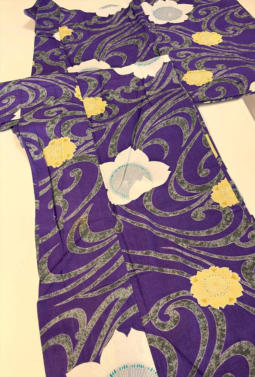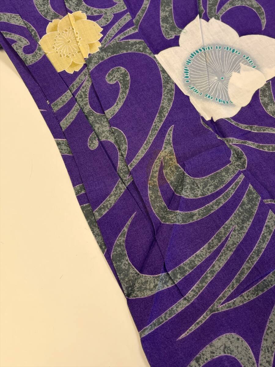 リサイクル浴衣 紫 コーマ地 プリント 流水に桜 リメイク 素材 綿