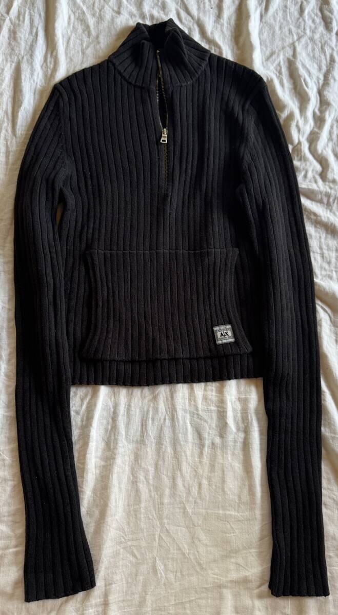 アルマーニ ニット アルマーニエクスチェンジ 厚手 ジップアップ L 黒 セーター