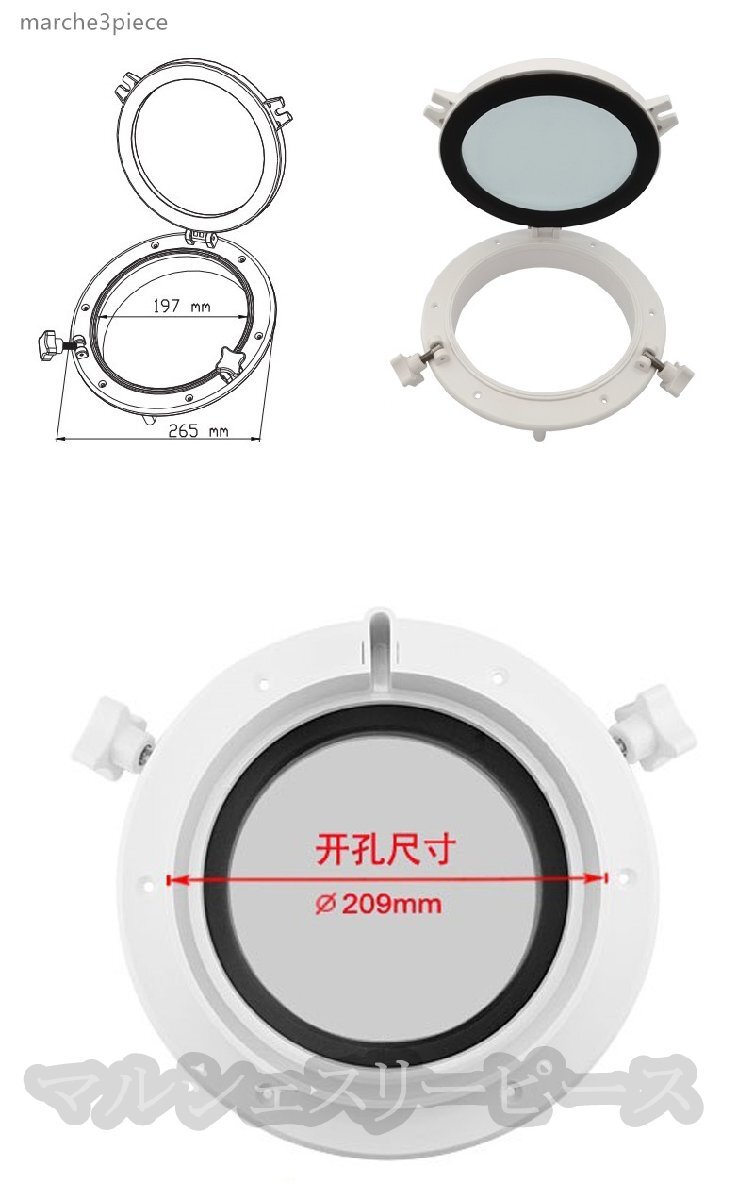 船舶用円形舷窓 ハッチ窓 キャンピングカー・船舶・ヨット用窓 265mm 黒