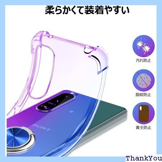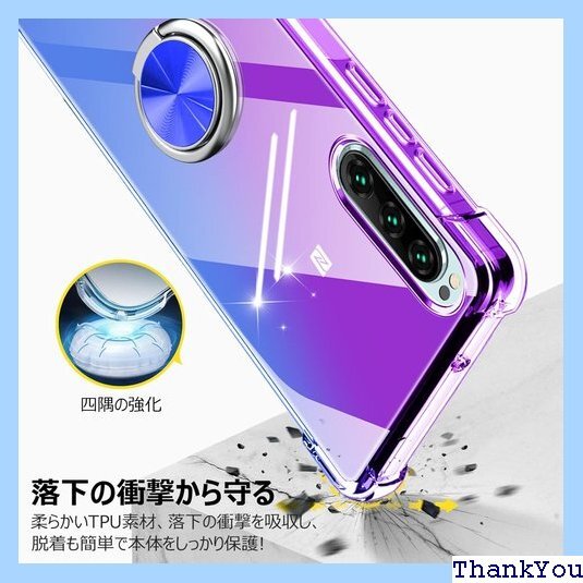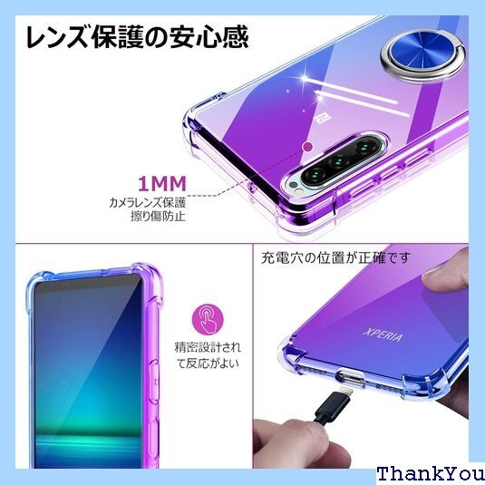 Tgaoleyd XPeria 1 II ケース クリア リング付き 耐衝撃 グラデーション色 シリコン 軽量 薄型 スタンド機能 衝撃吸収 米軍MIL規格 SO-51A SOG01カバー tpu ソフト レンズ保護 滑り止め 黄ばみ防止 指紋防止 車載スタンド対応 ソニー エクスペリア 1 II カバー 透明 耐久 一体型スマホケース 人気 おしゃれ 携帯カバー 青 D69-171 322