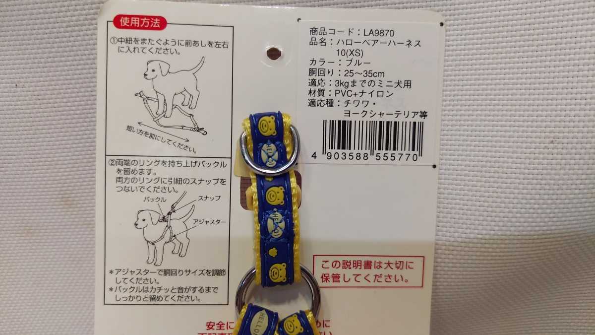 Petio ペティオ ミニ犬用 胴輪 ハローベアーハーネス10XS ブルー LA9870