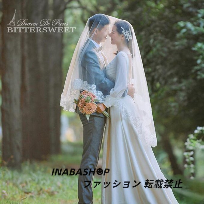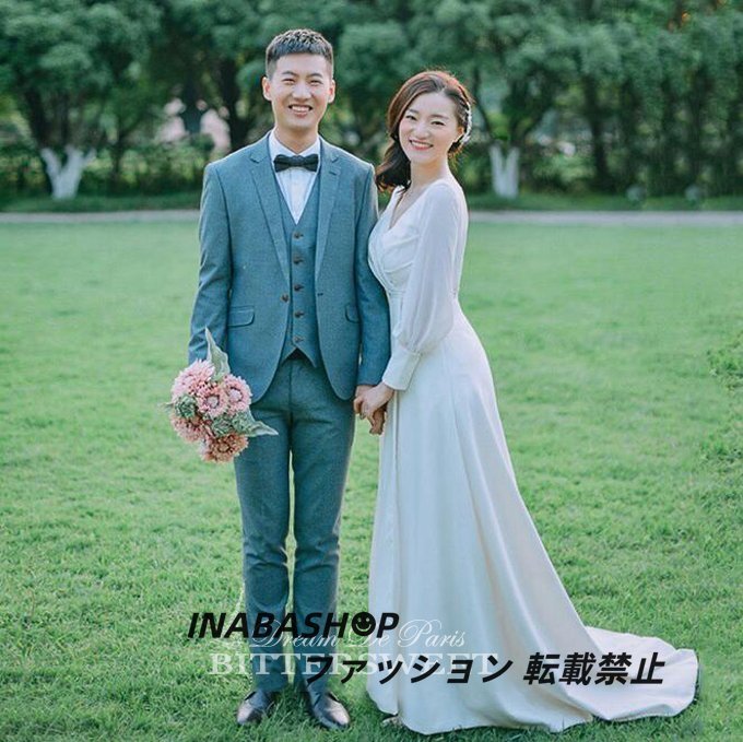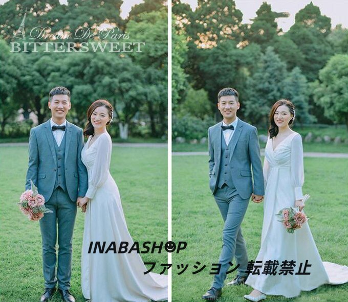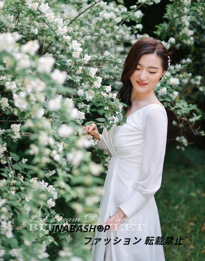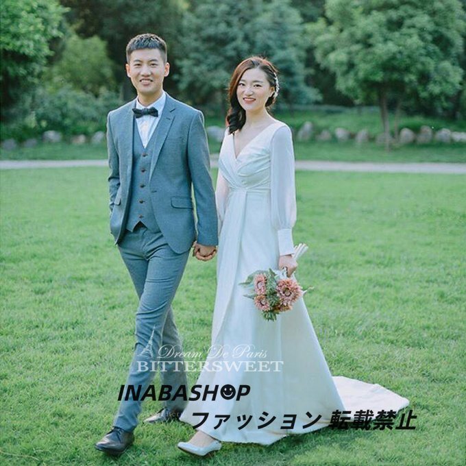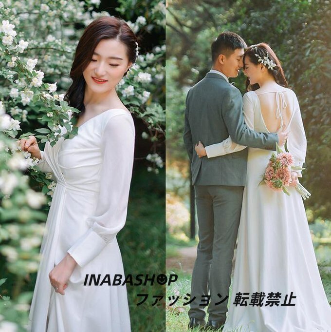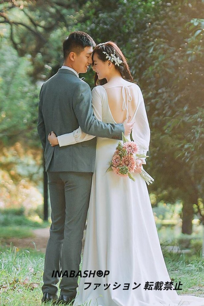 長袖ウェディングドレス トレーンドレス ウエディングドレス スレンダーライン レディースドレス 披露宴 結婚式 演奏会 海外挙式ドレス