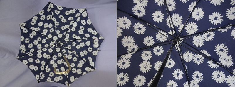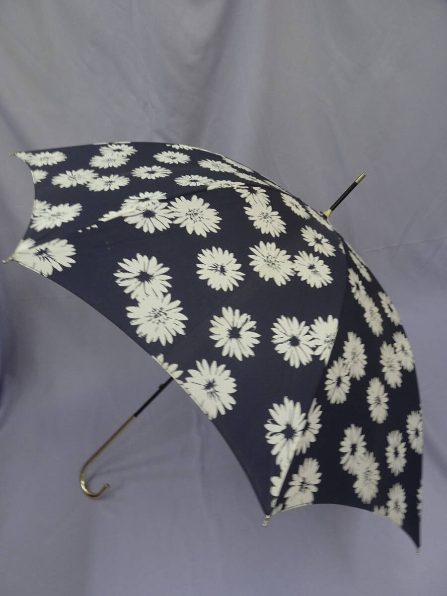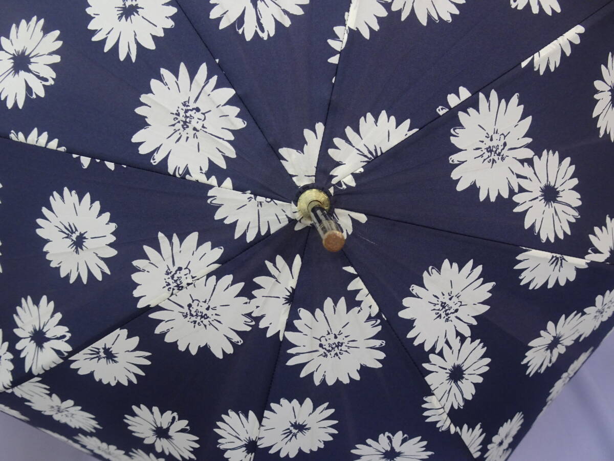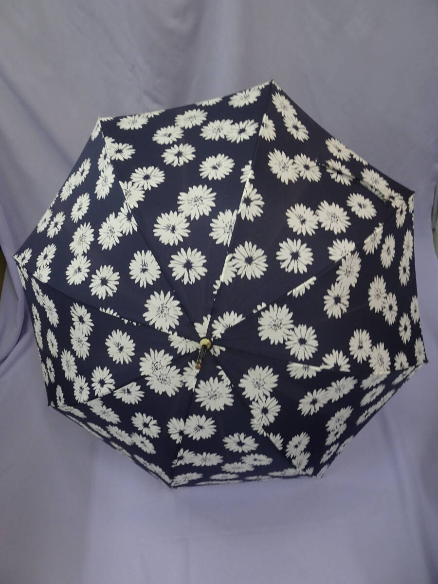 (M-612) ビコーズ because 長傘 雨傘 55㎝ ブルー系 白い花柄 手開き レディース 中古