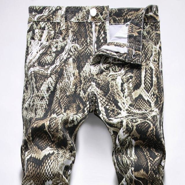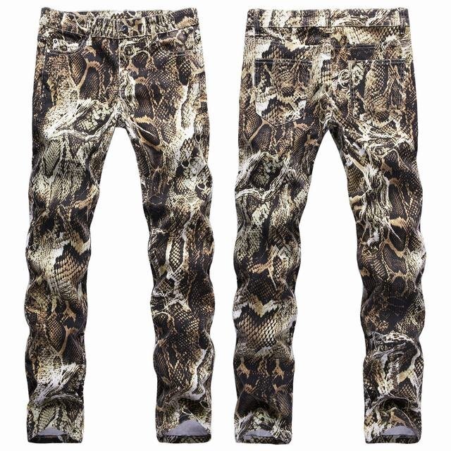 メンズ ボトムス パンツ デニムズボン スネークプリント ヘビ柄 スリム カジュアル 個性的34