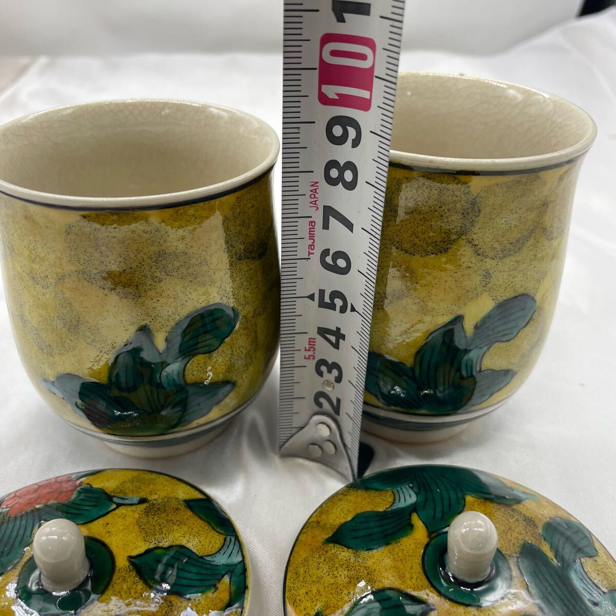 九谷焼 栄山作 金彩花文 夫婦湯呑み 木箱入 ペア 二客 茶器 湯飲み 和食器 湯呑 美品 2客セット 煎茶道具 お茶 来客 当時物 u9870