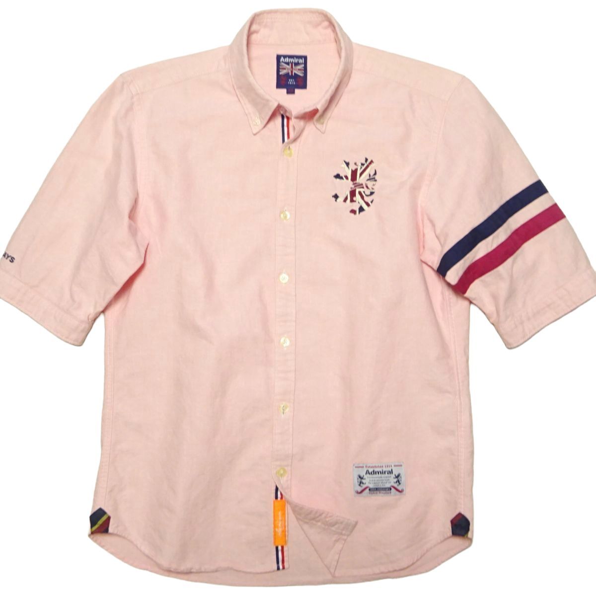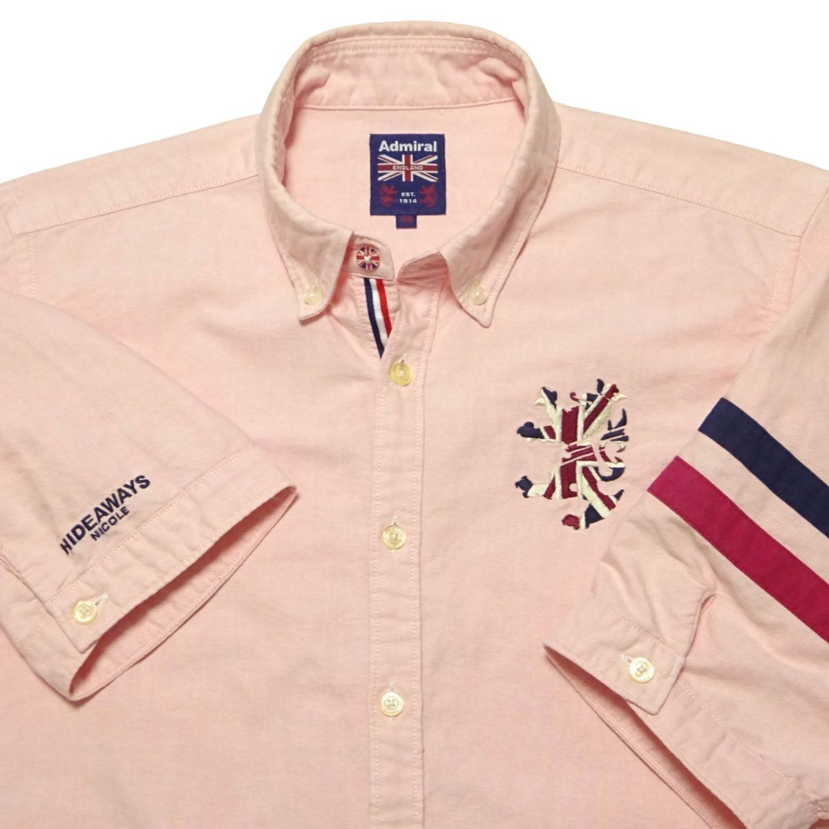 ★アドミラル×ハイダウェイニコル★五分袖BDシャツ48/ピンクAdmiral HIDEAWAYS NICOLEメンズボタンダウンシャツオックスフォードシャツ