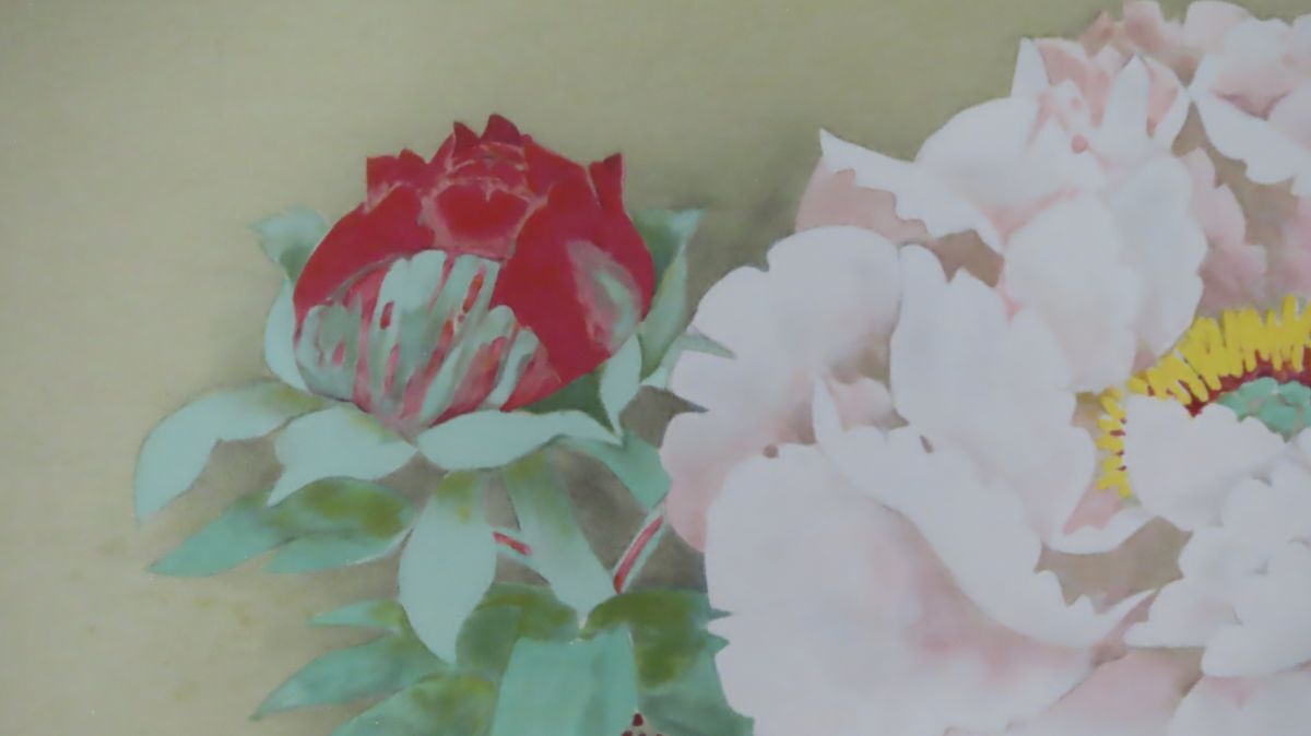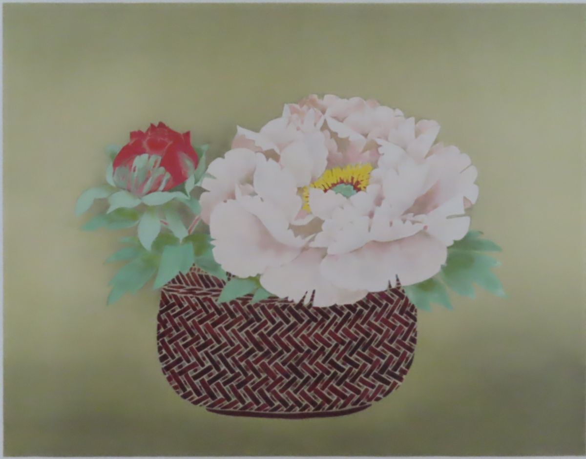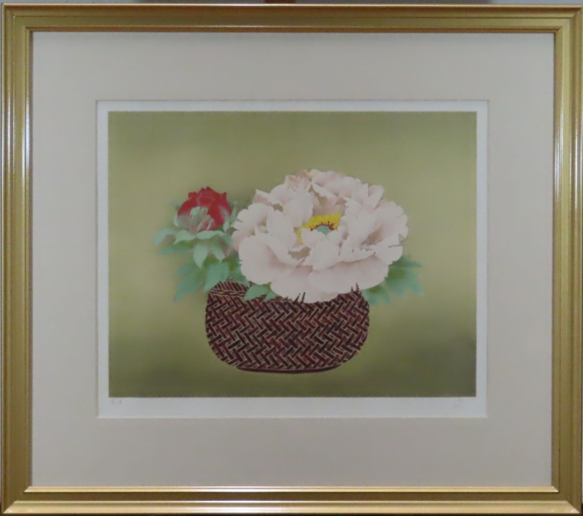 穂高「真作」 実力人気作家 堀 文子 「牡 丹」6号 限定リトグラフ  本人サイン