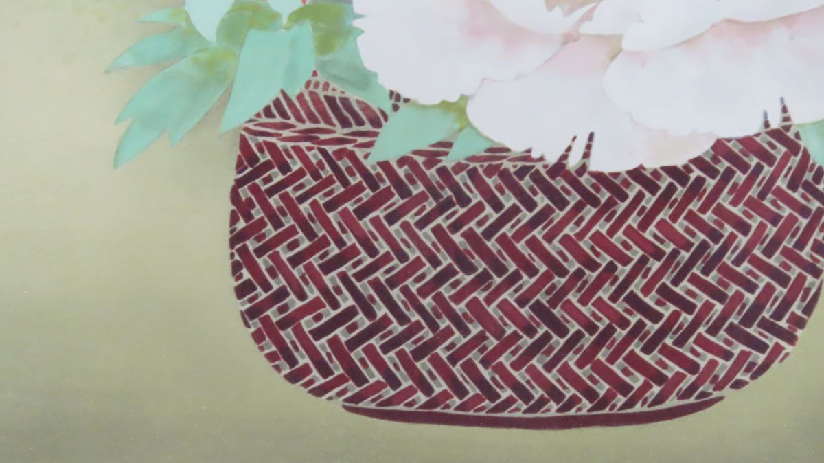 ☆創画会の重鎮として活躍した画伯は無所属になり、没するまで旺盛な制作意欲は衰えがありませんでした。華やかな中にも、凛とした画伯らしい色彩の綺麗な楽しい作品です。☆