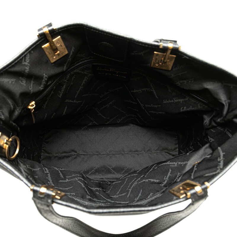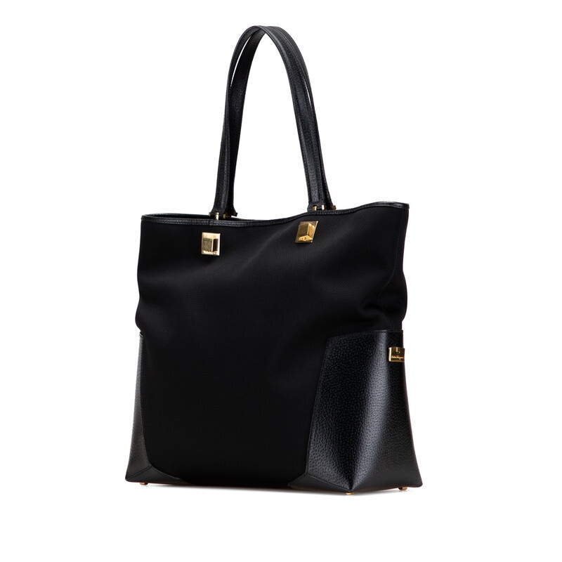 サルヴァトーレフェラガモ ショルダーバッグ トートバッグ AU-21 1896 ブラック レザー ナイロンキャンバス Salvatore Ferragamo【中古】