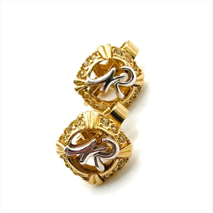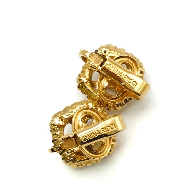 美品 NINA RICCI ニナリッチ ラインストーン ゴールド シルバー コンビ イヤリング アクセサリー レディース a9629 | |||