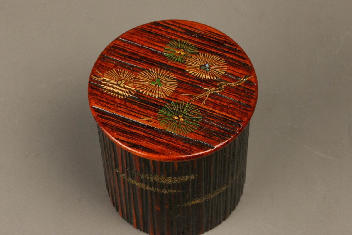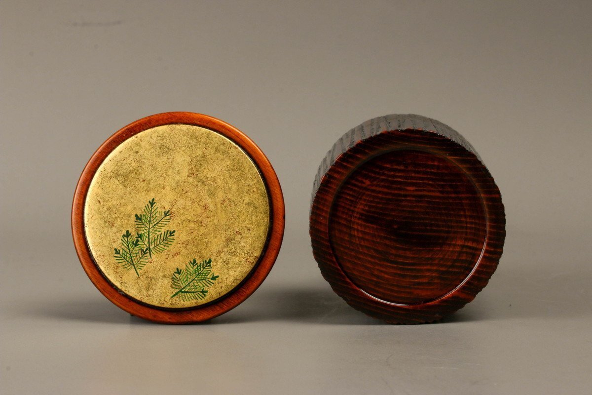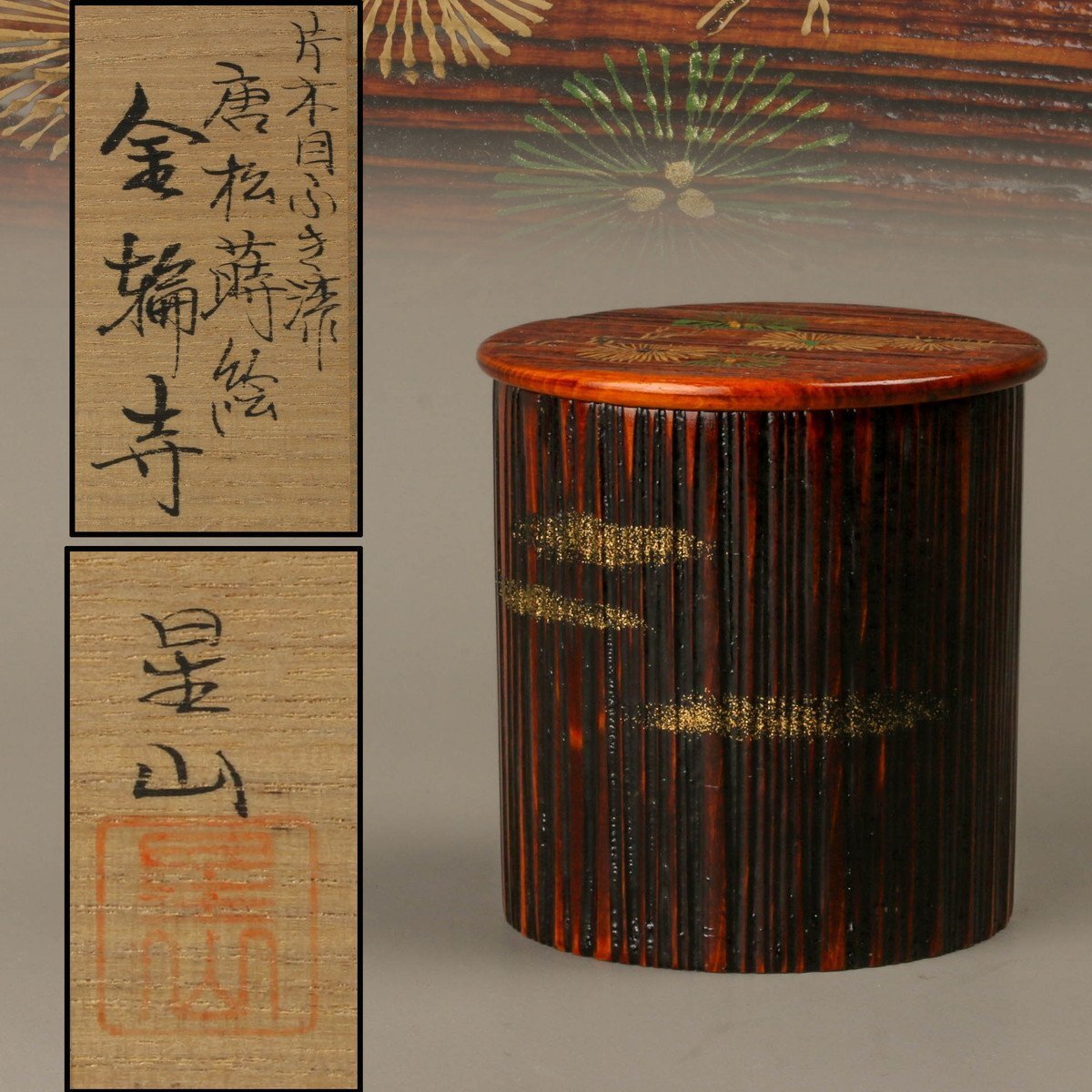 【SAG】中林星山 片木目ふき漆唐松蒔絵金輪寺棗 共箱 茶道具 本物保証