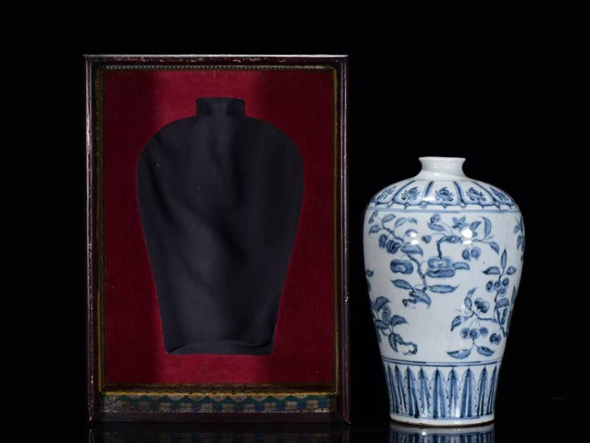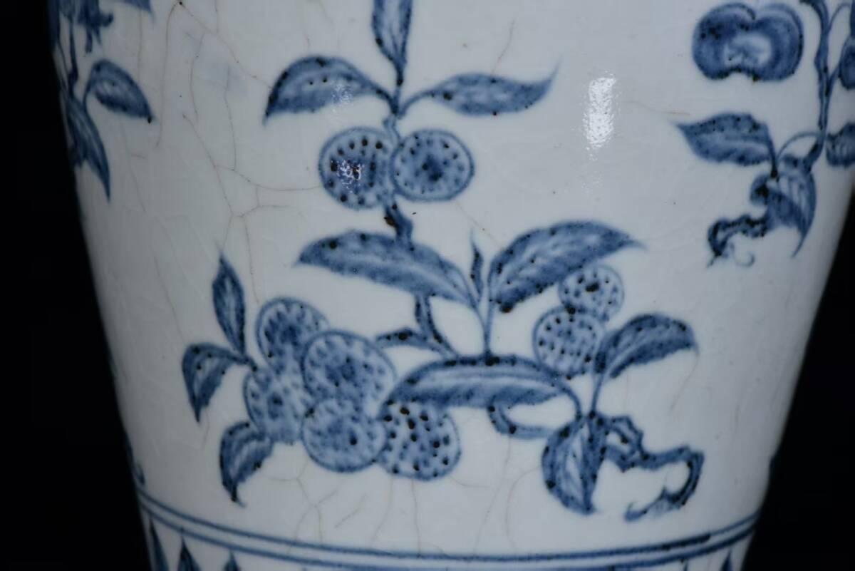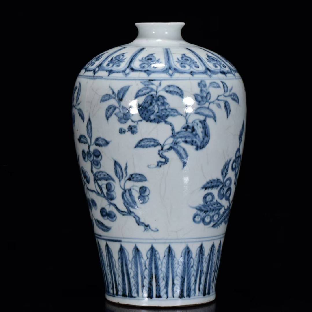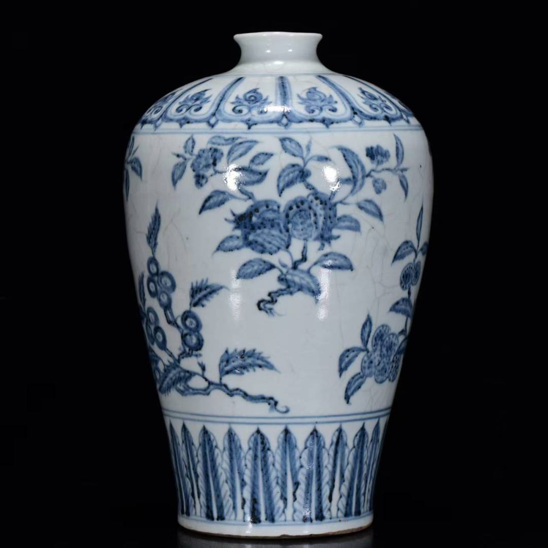 唐物 明 空才期 青花 三果紋 梅瓶 陶芸 古陶磁器 中国磁器 極細工 中国古玩 骨董品 古美味 D68