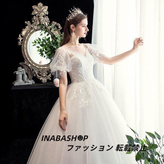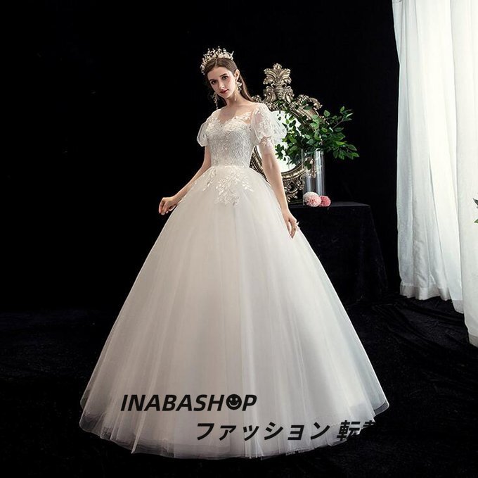 ウェディングドレス ウエディングドレス 袖あり 床付きタイプ Aライン ロング 前撮り 後撮り 披露宴 結婚式 演奏会 発表会 海外挙式ドレス