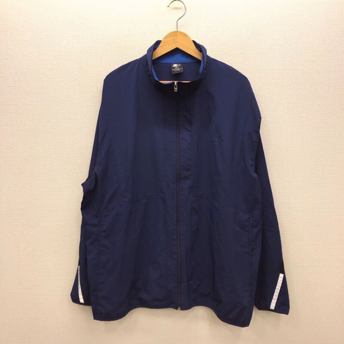 【GH497】STARTER XLサイズ ウィンドブレーカー ネイビー ストレッチ生地 ブランド古着 スターター スポーツウェア 送料無料