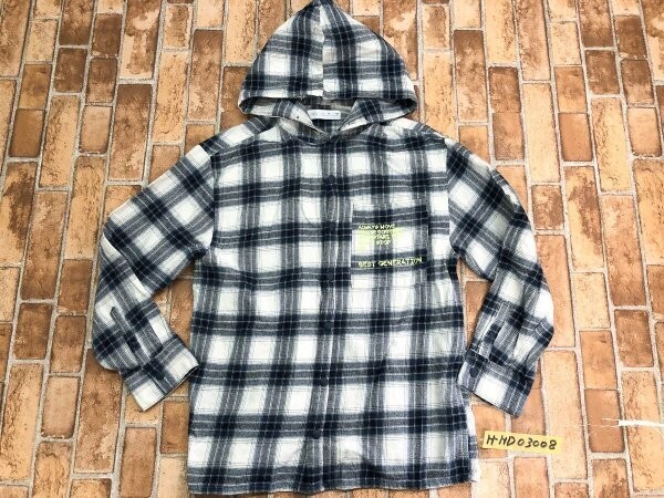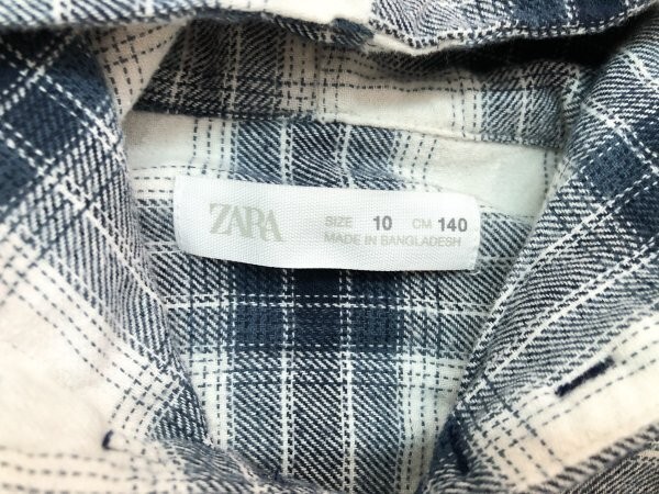ZARA ザラ キッズ チェック柄 フード付き フランネルシャツ 140 紺白 コットン