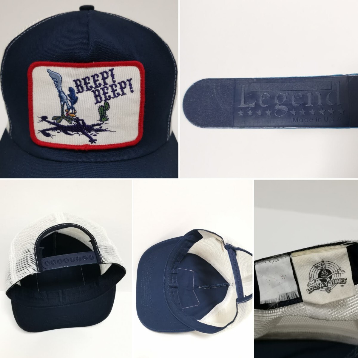 【コメント】:2000年代のBACK DROP別注ルーニーテューンズ トラッカーメッシュキャップです。USA製、希少なロードランナー&コヨーテのワッペン付き限定モデルになります。使用感の少ないコンディション良いお品です。昔のモノですので一応古着扱いでお願いします。