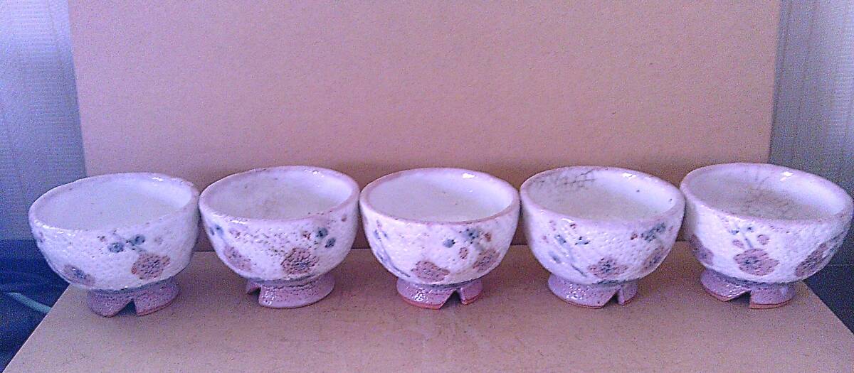 ■ く-844 湯呑み 5個 萩焼 未使用 銘あり 箱なし ※単品約寸)高6.1cm 口径9.2cm 高台1.2cm 総重量1kg