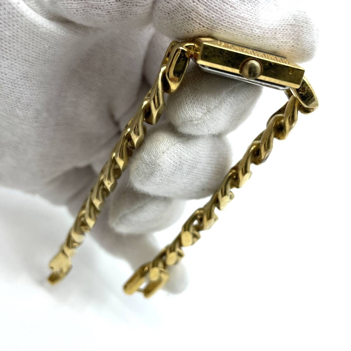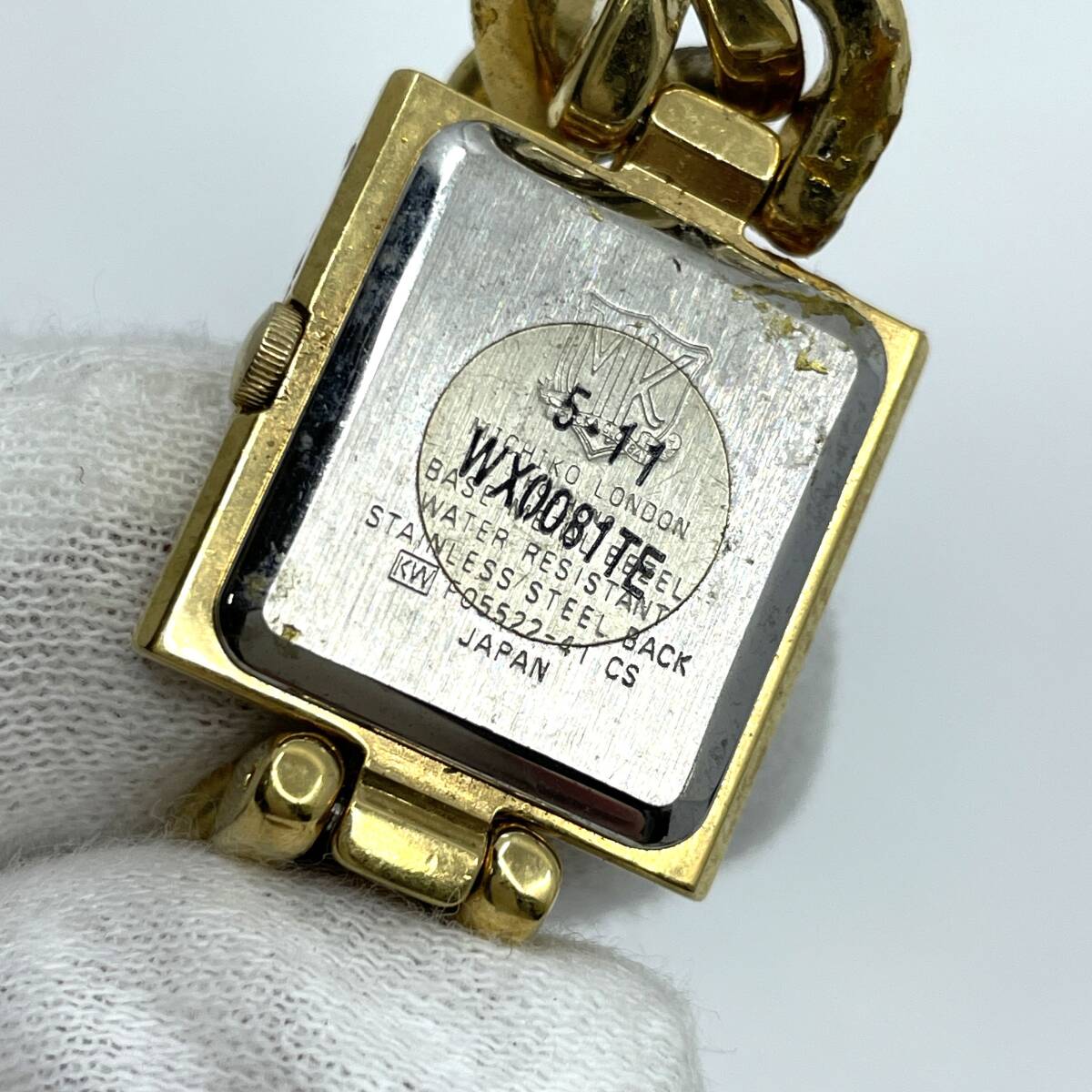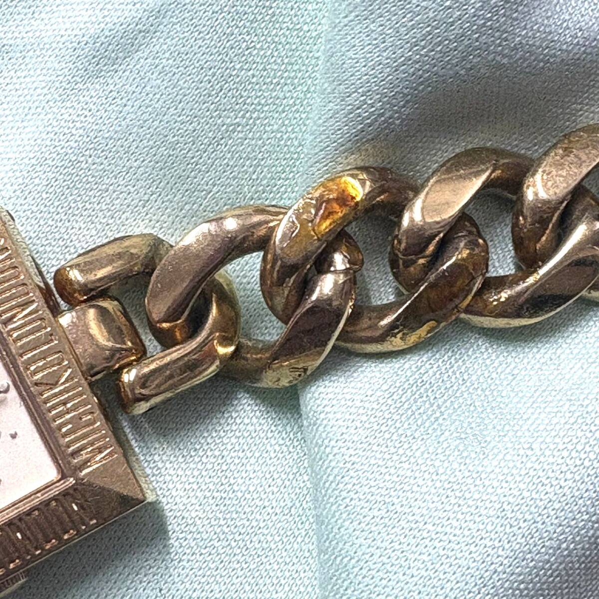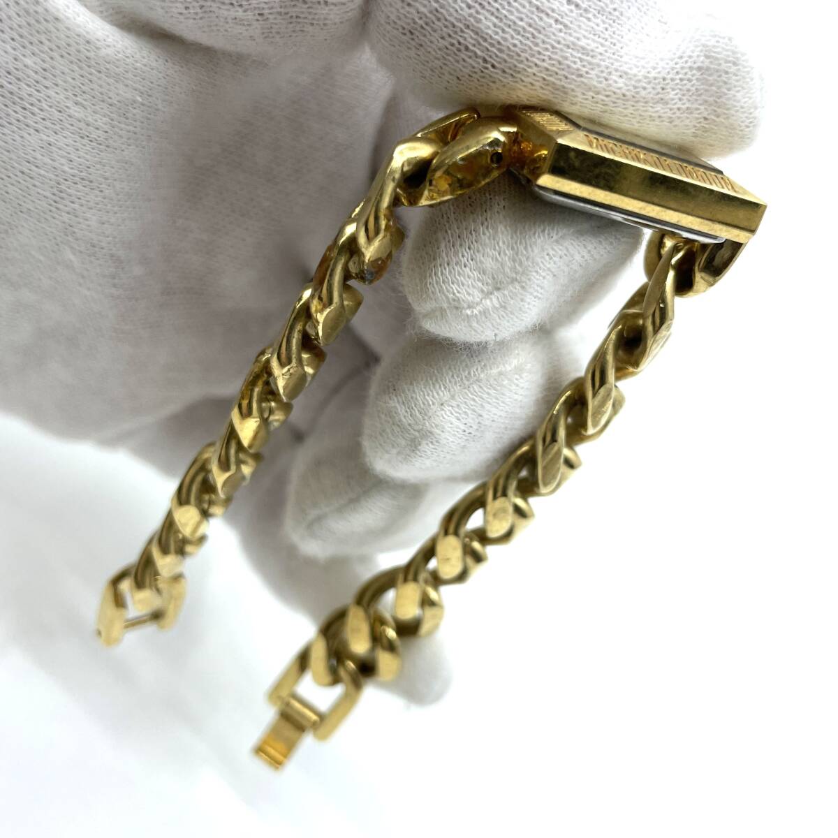 【動作未確認】MICHIKO LONDON ミチコ ロンドン クォーツ 腕時計 ゴールド文字盤 3針 スクエア 喜平風 チェーンブレスレット F05522-41
