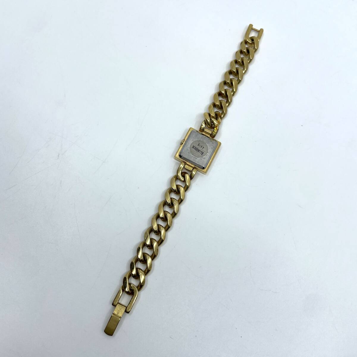 クォーツ 腕時計 ゴールド文字盤 3針 スクエア 喜平風 チェーンブレスレット レディース