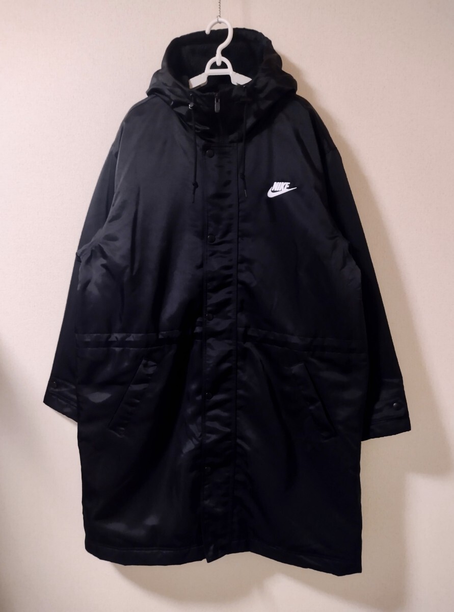ナイキのロゴ刺繍がシンプルに入ったベンチコートです。フードの内側もしっかり防寒性のあるフリースを使用しています。袖口はスナップボタン付で調整可能。特定用の競技用ではありませんので、あらゆるシーンで着用可能。フリース&中綿の組み合わせは抜群の保温性を持った作りで、これからの季節に確実に重宝するでしょう。
