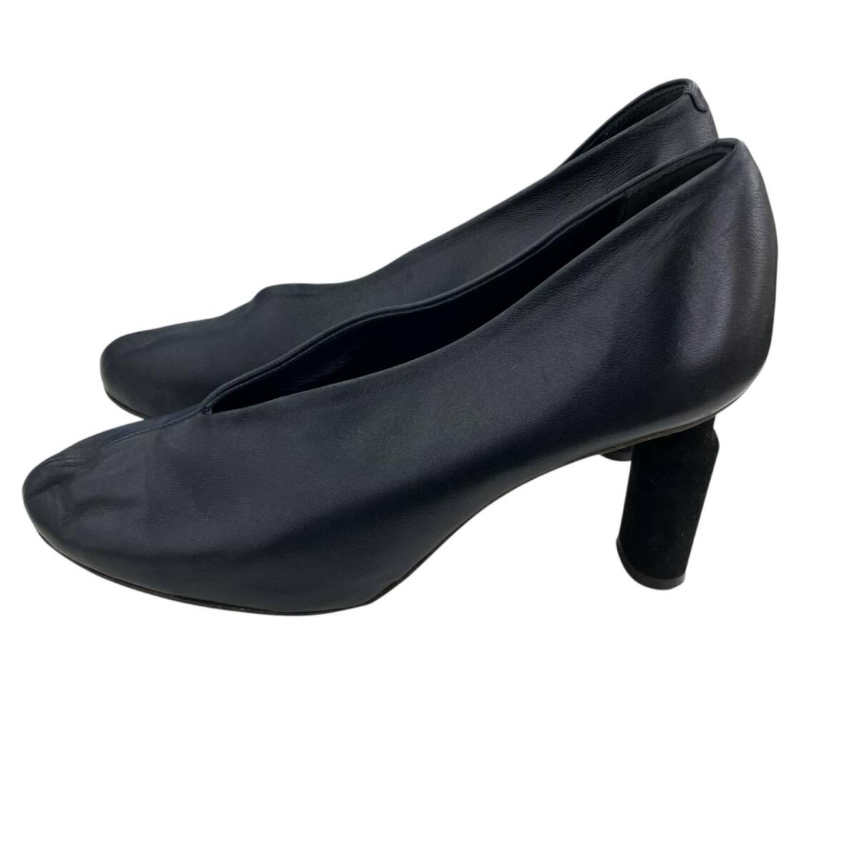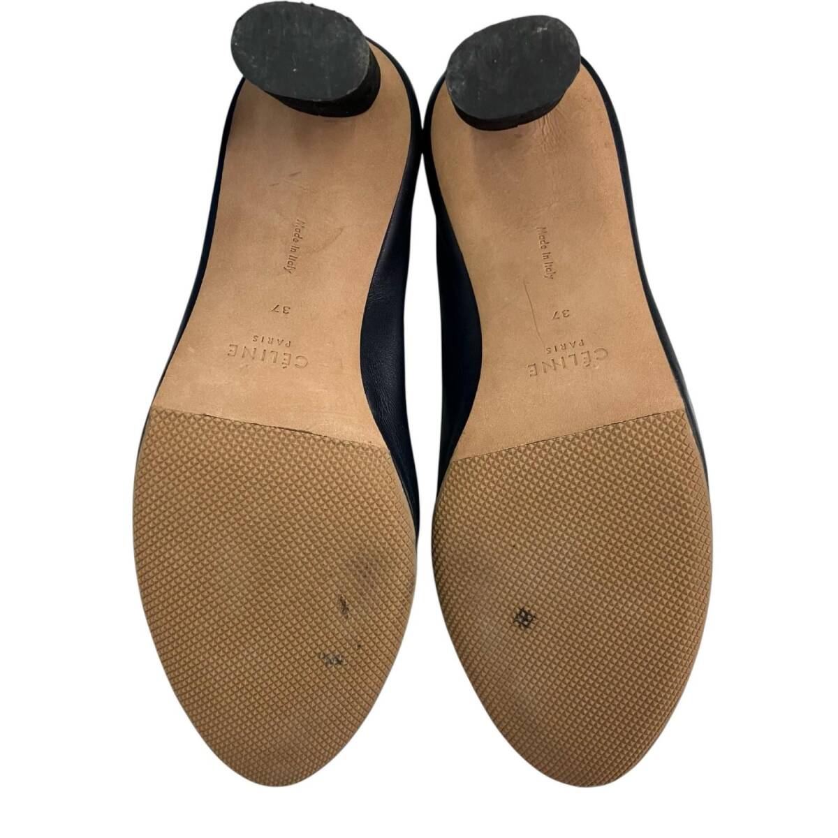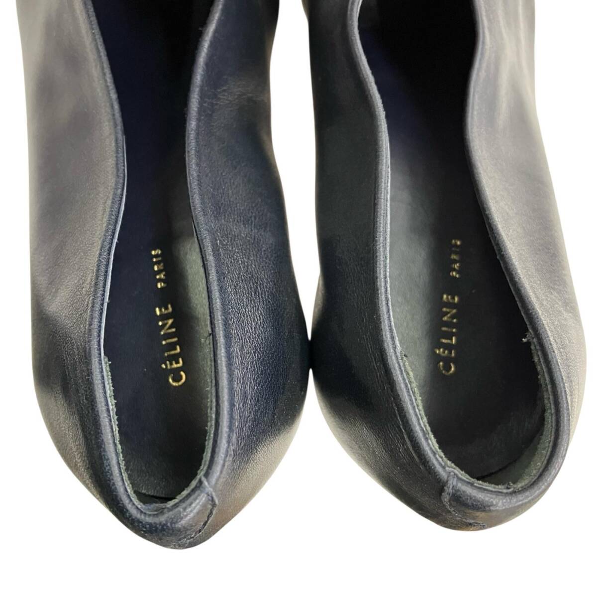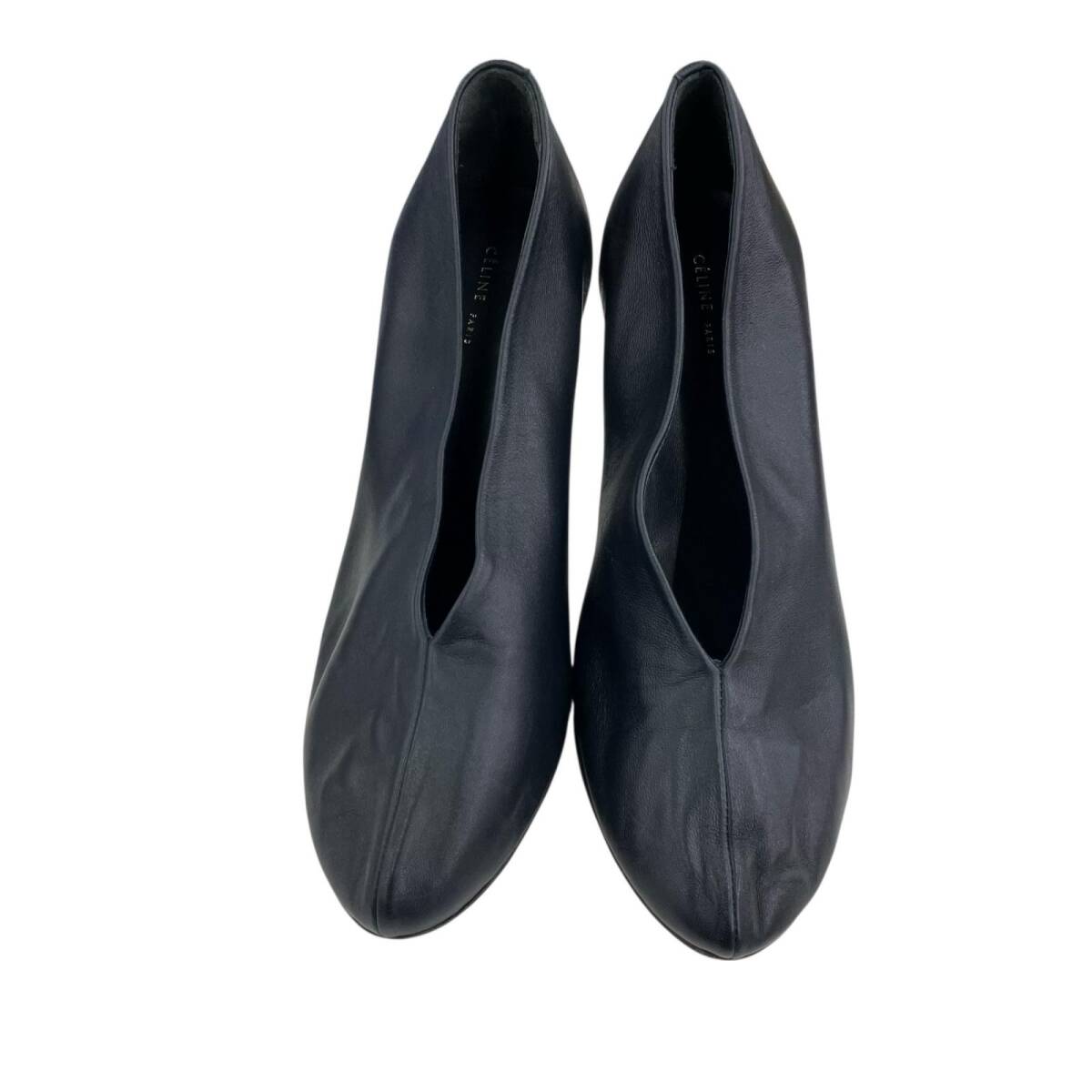 現状品 CELINE セリーヌ 23.5cm Vネック パンプス サイズ37 ベルベット  ネイビー ブラック/レザー レディース