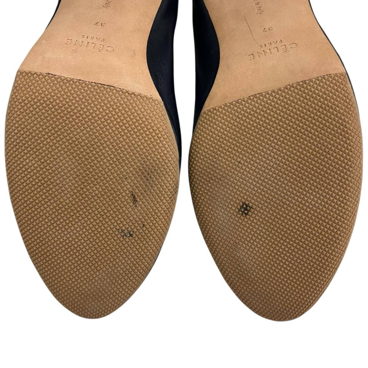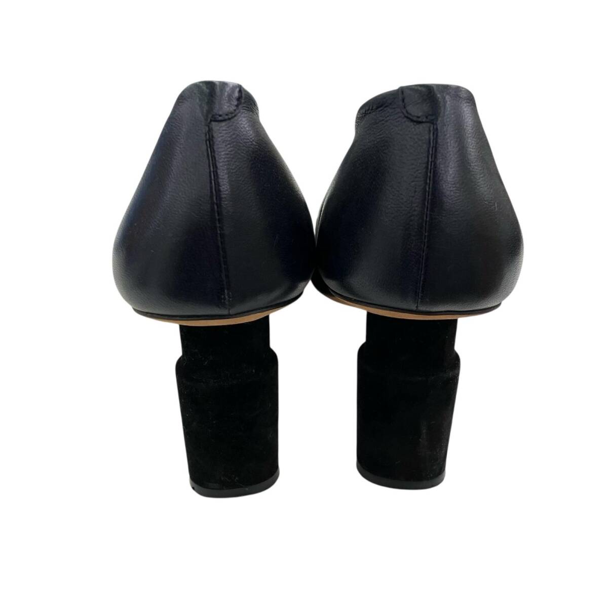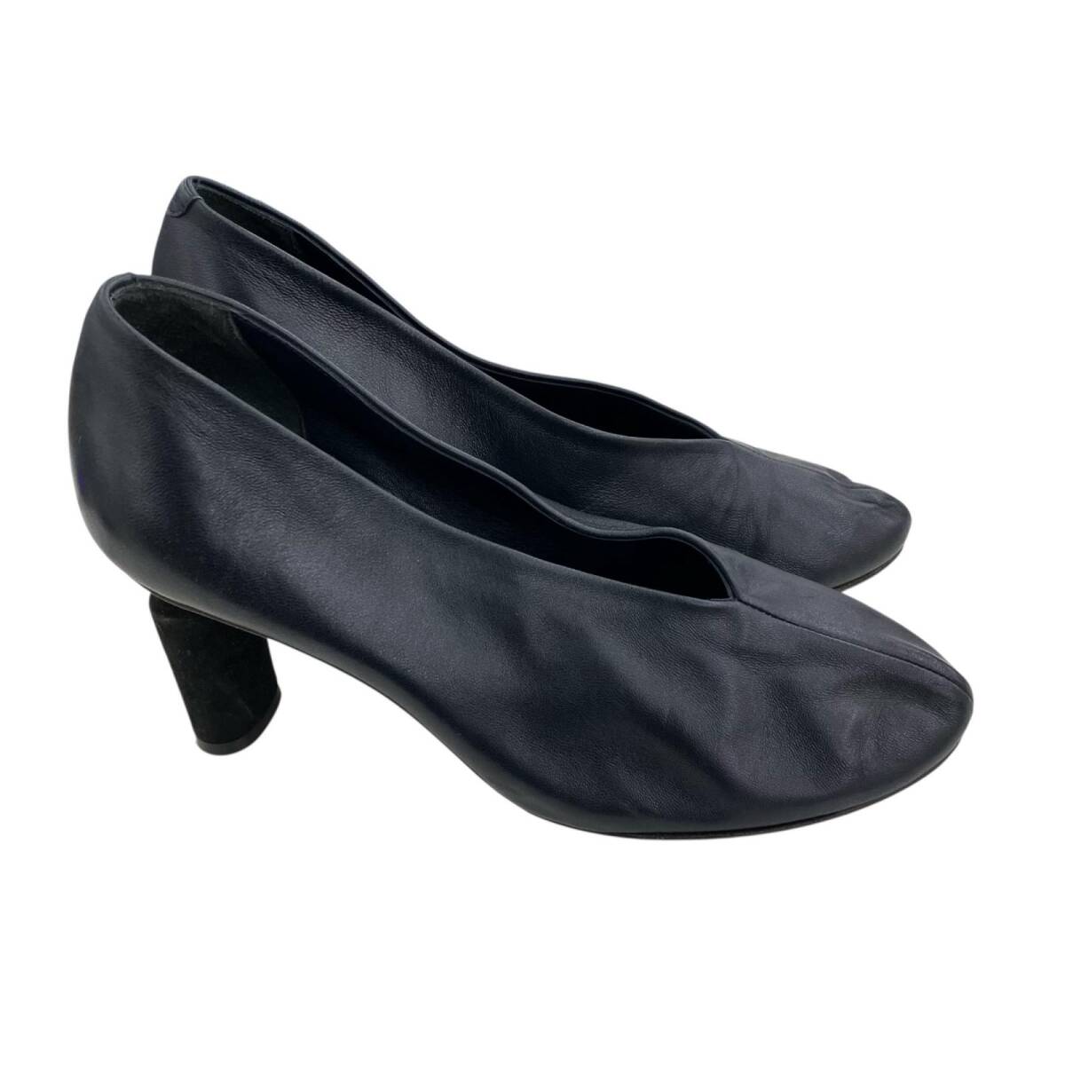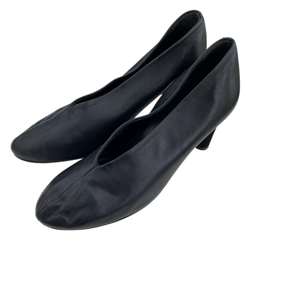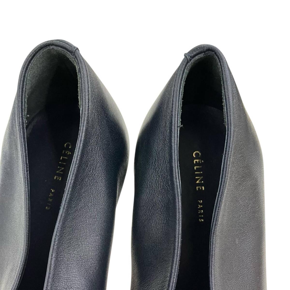 現状品 CELINE セリーヌ 23.5cm Vネック パンプス サイズ37 ベルベット  ネイビー ブラック/レザー レディース