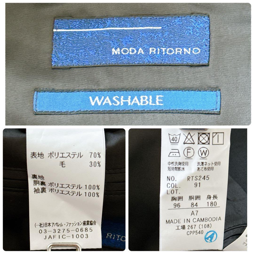 青山 スーツ MODA RITORNO メンズ A7サイズ 180cm ビジネススーツ セットアップ ネイビー 無地 就活 リクルート ウォッシャブル ストレッチ 洗えるスーツ フォーマル 冠婚葬祭 春夏秋冬 オールシーズン