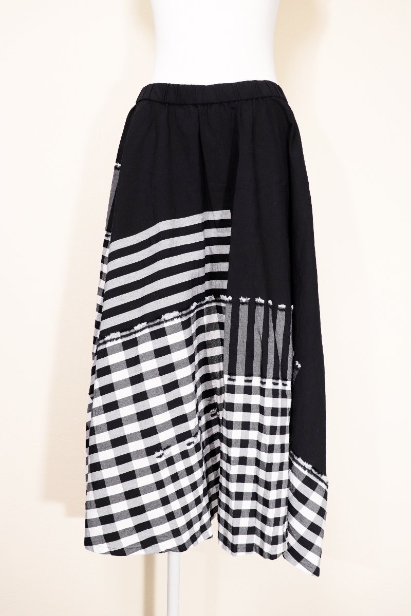 黒・白・灰のモノトーンカラーで、無地×ストライプ×チェックをランダムに組み合わせたデザインです。