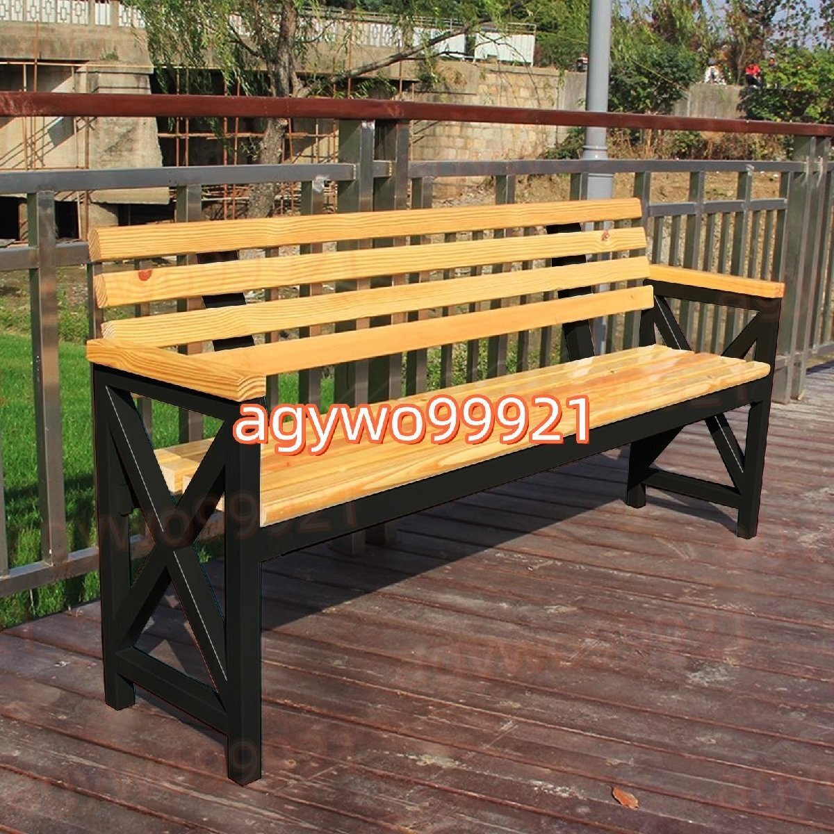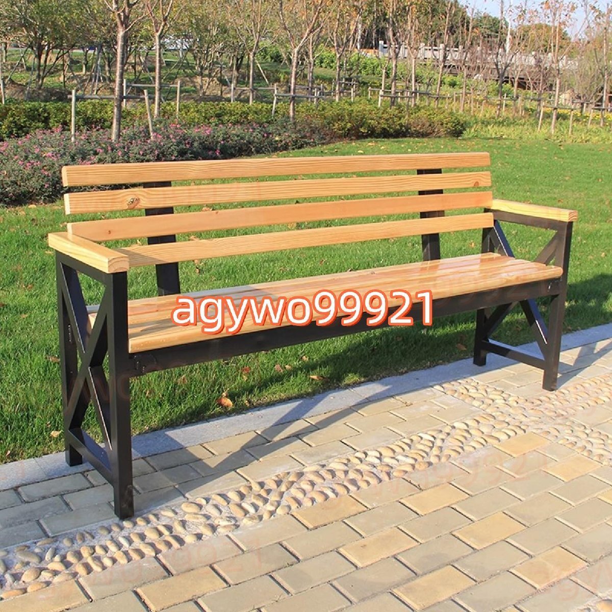 ガーデンベンチ 屋外 屋外用ベンチ ガーデンチェア 金属製パティオベンチ 無垢材の背もたれとアームレスト付き ポーチ 芝生 庭 公園 庭用 容量 500 kg(Black 120cm/47in)