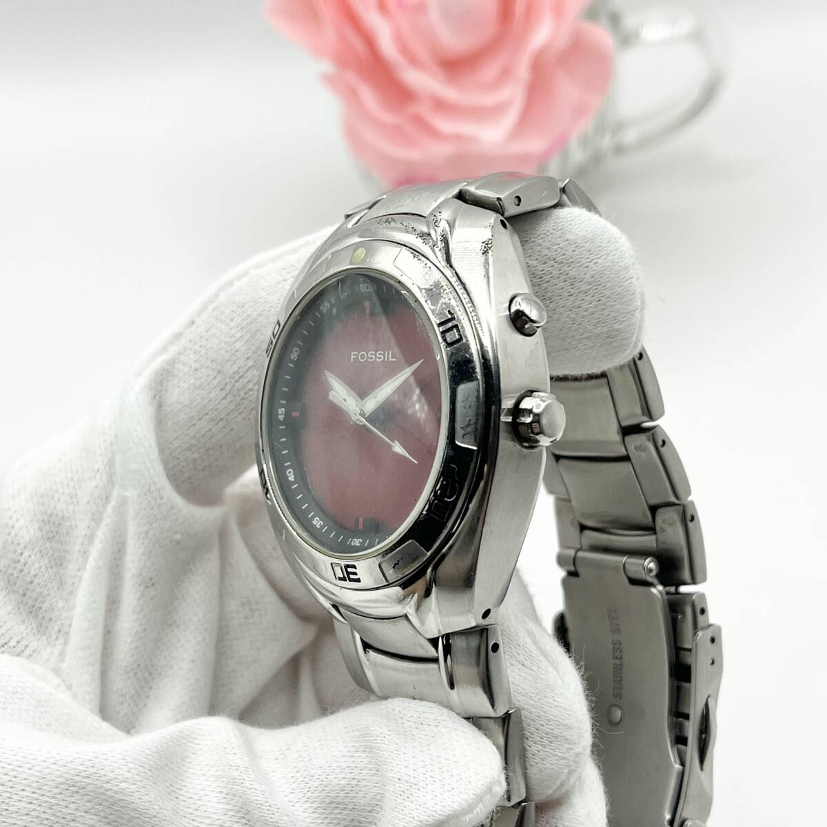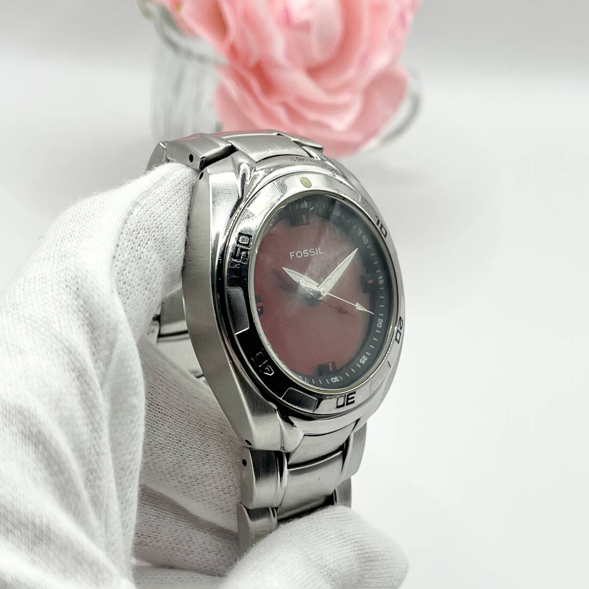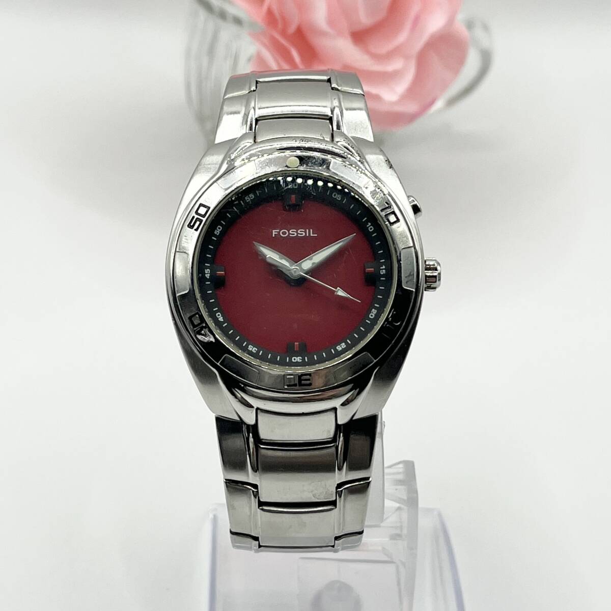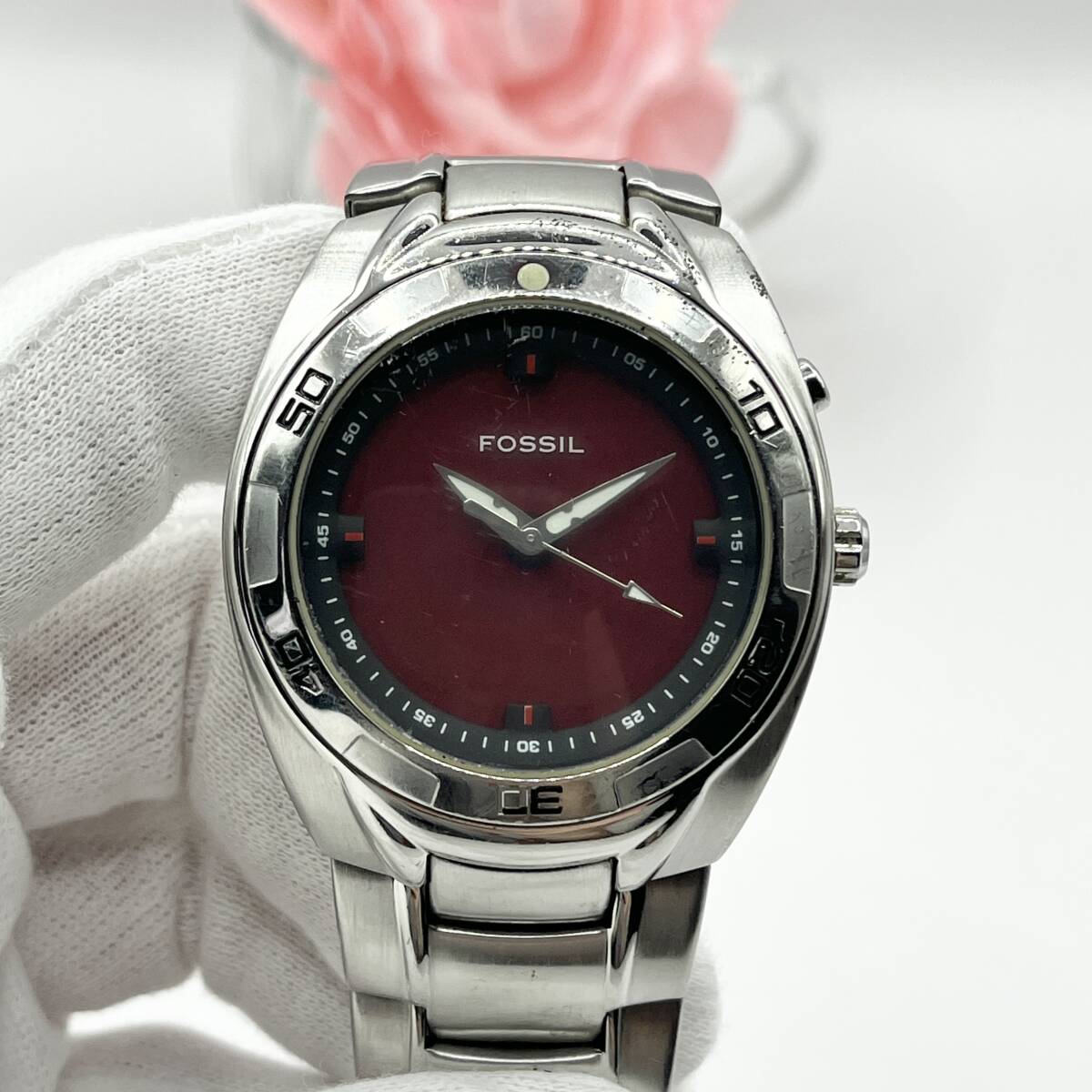 《訳あり》FOSSIL★フォッシル★BIG TIC★ビッグティック★クォーツ 腕時計★メンズ★シルバー×レッド★管理604d