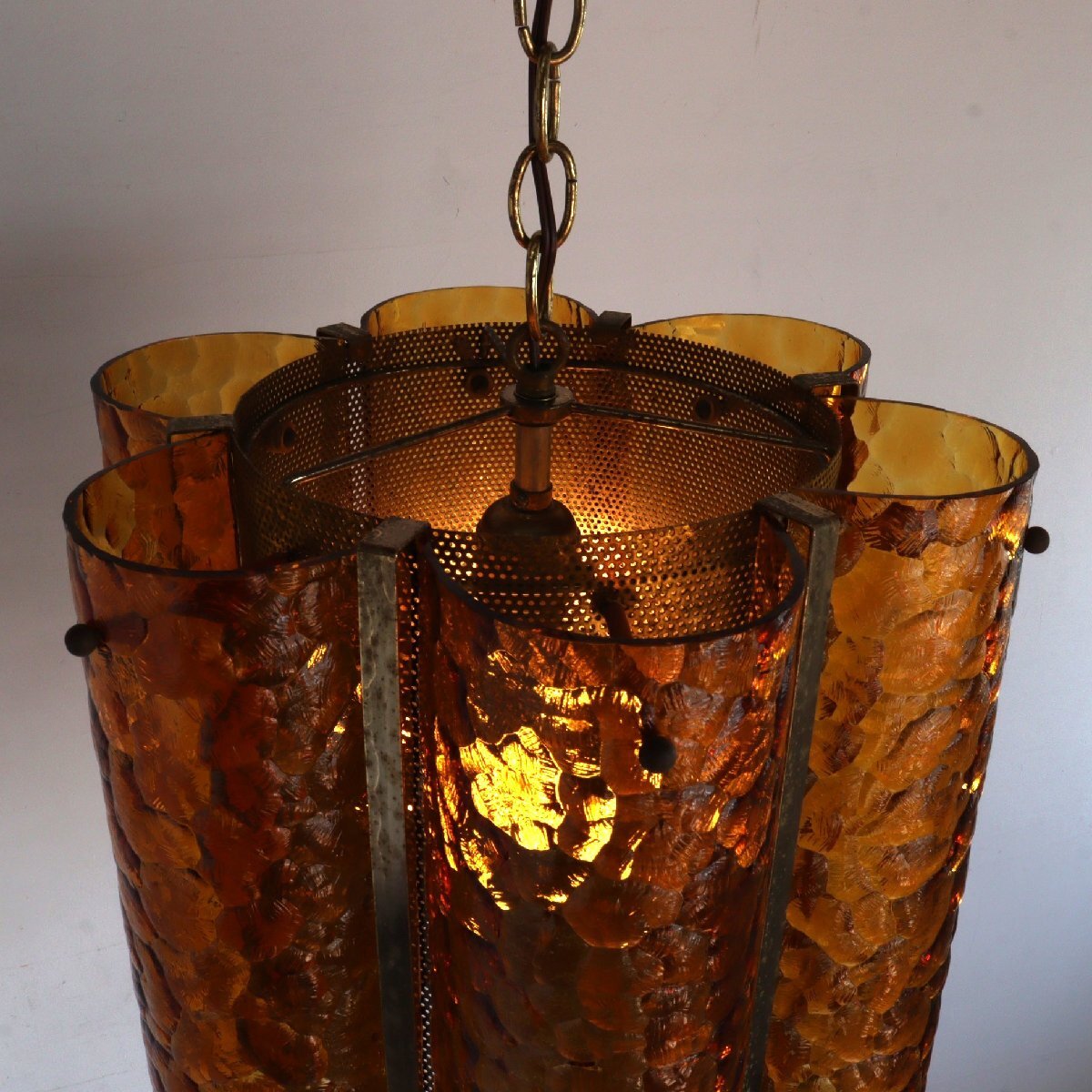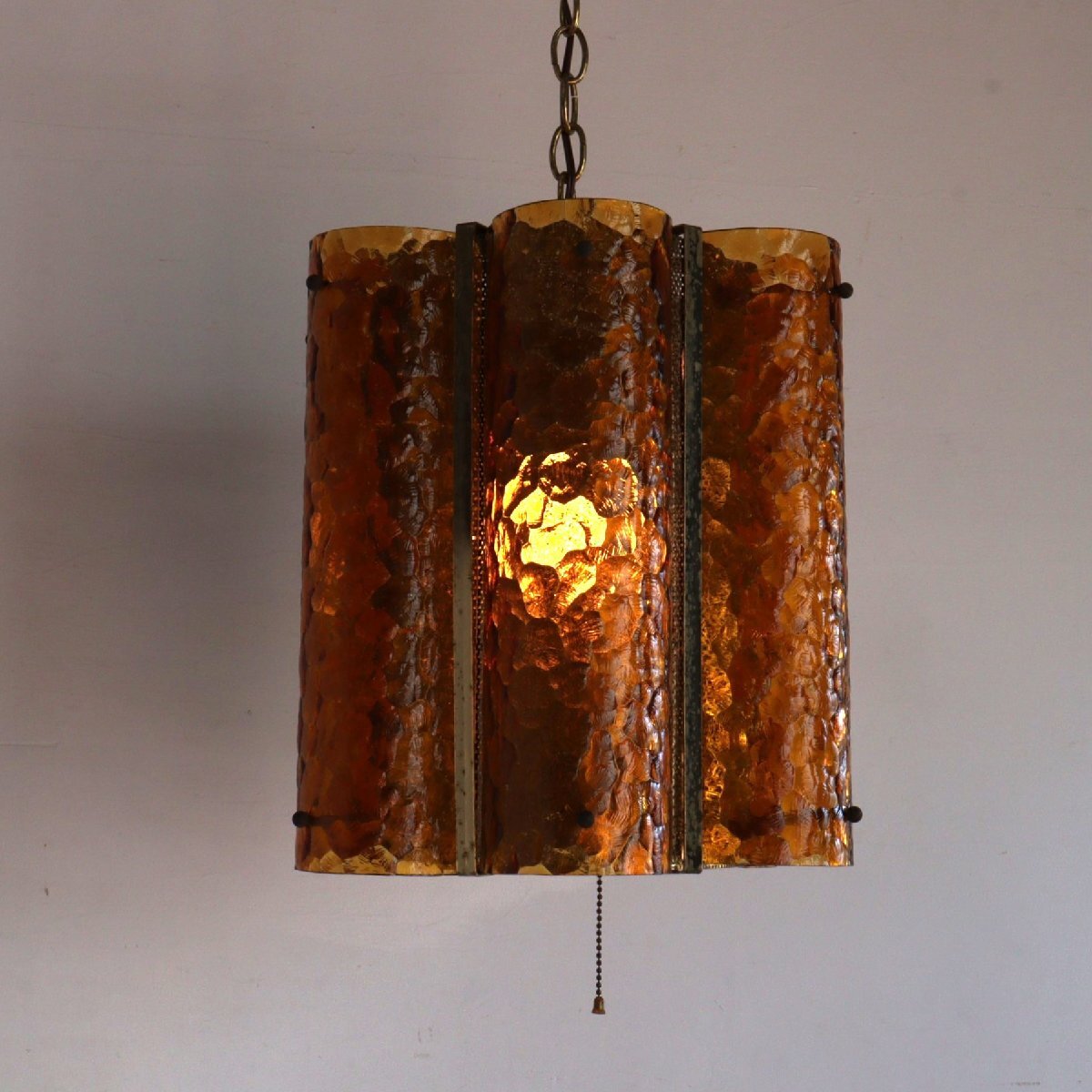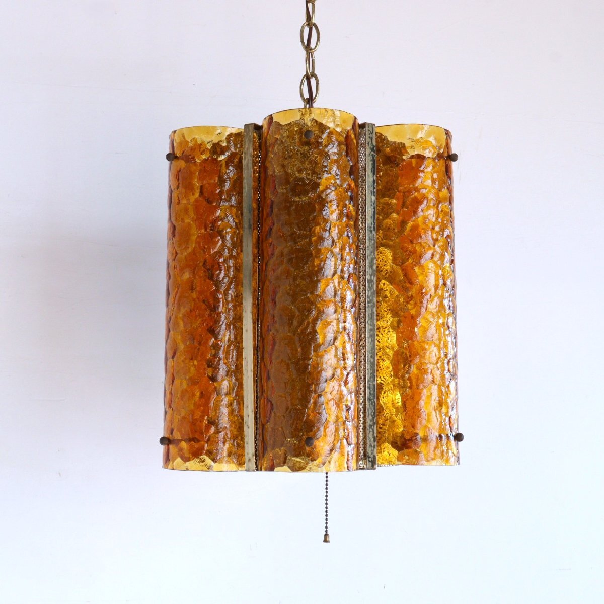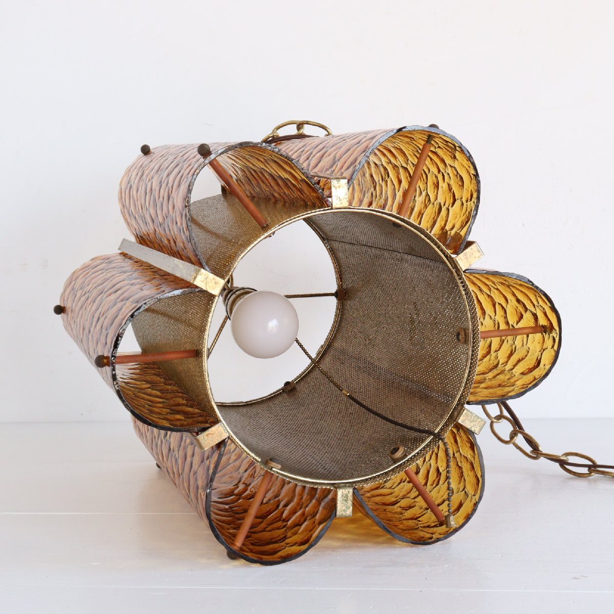 | 商品説明 explanation | 推定1950年~60年代頃の、アンバーガラスのペンダントランプです。 半円のガラスには、凹凸のあるガラス加工が施されています。 下から覗くと花ようなの形をしていて、とても可愛らしいです。 明かりを灯せば、アンバーガラス特有の優しく温かみのある光で、優しく空間を灯してくれます。 ご家庭のインテリア、店舗什器にいかがでしょうか。 |
